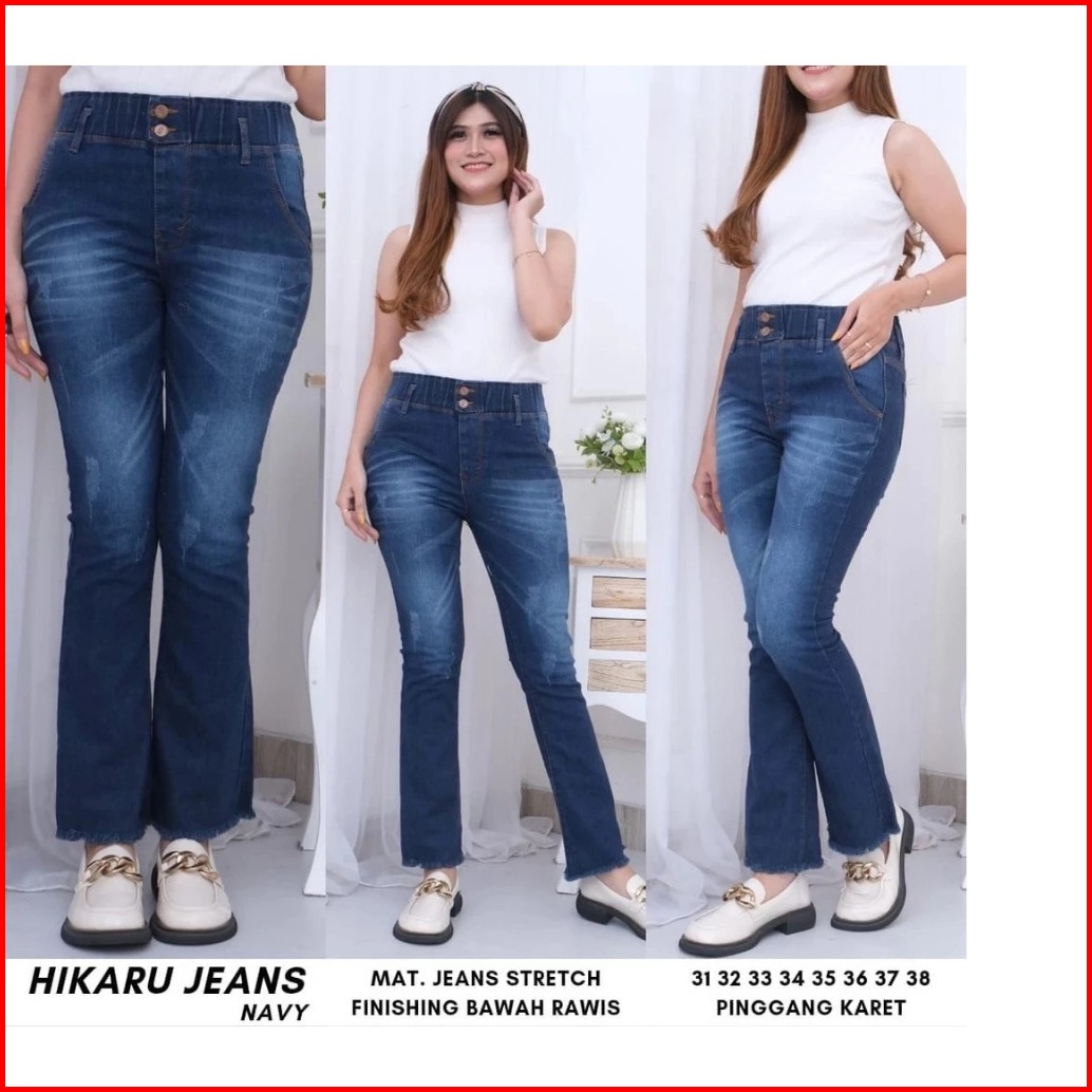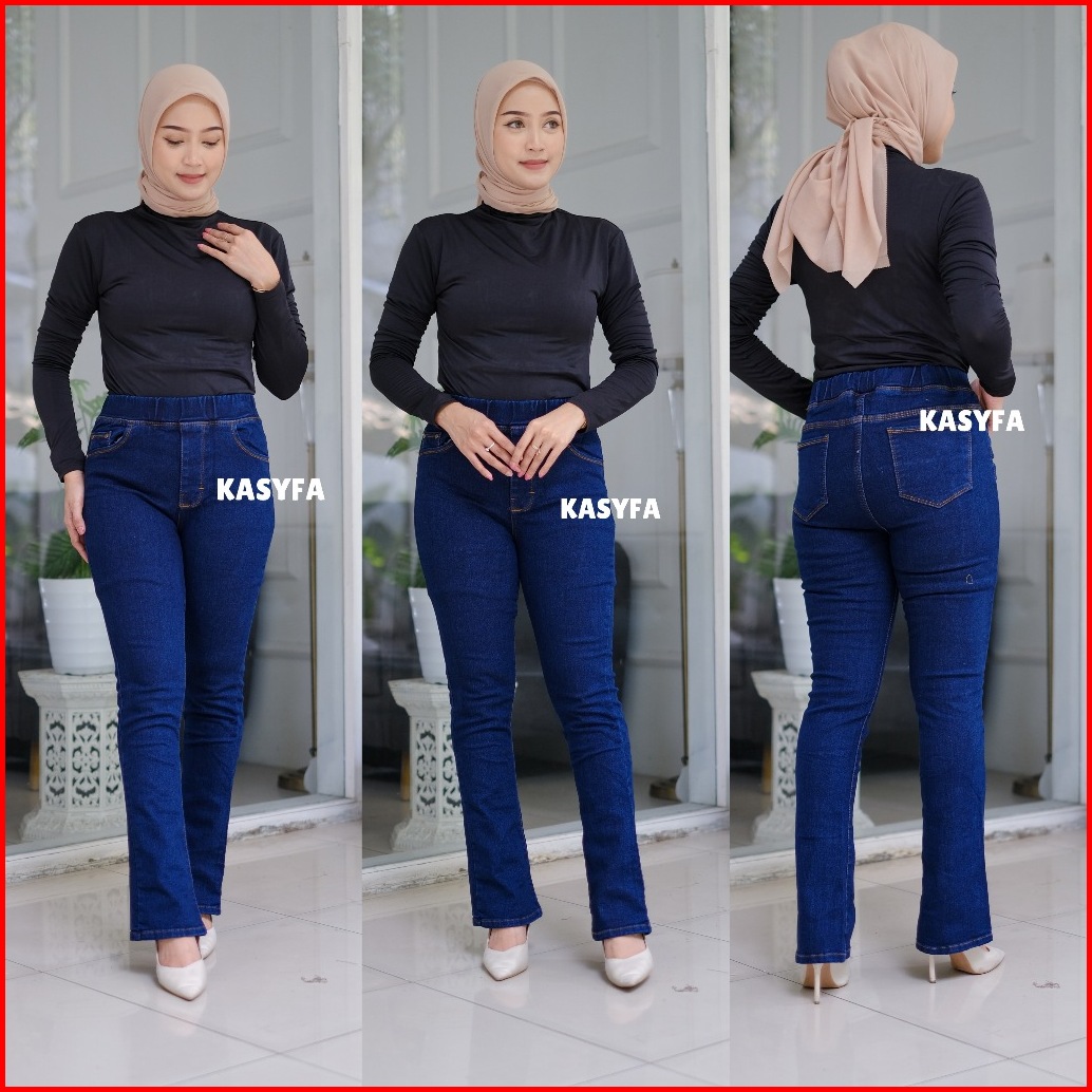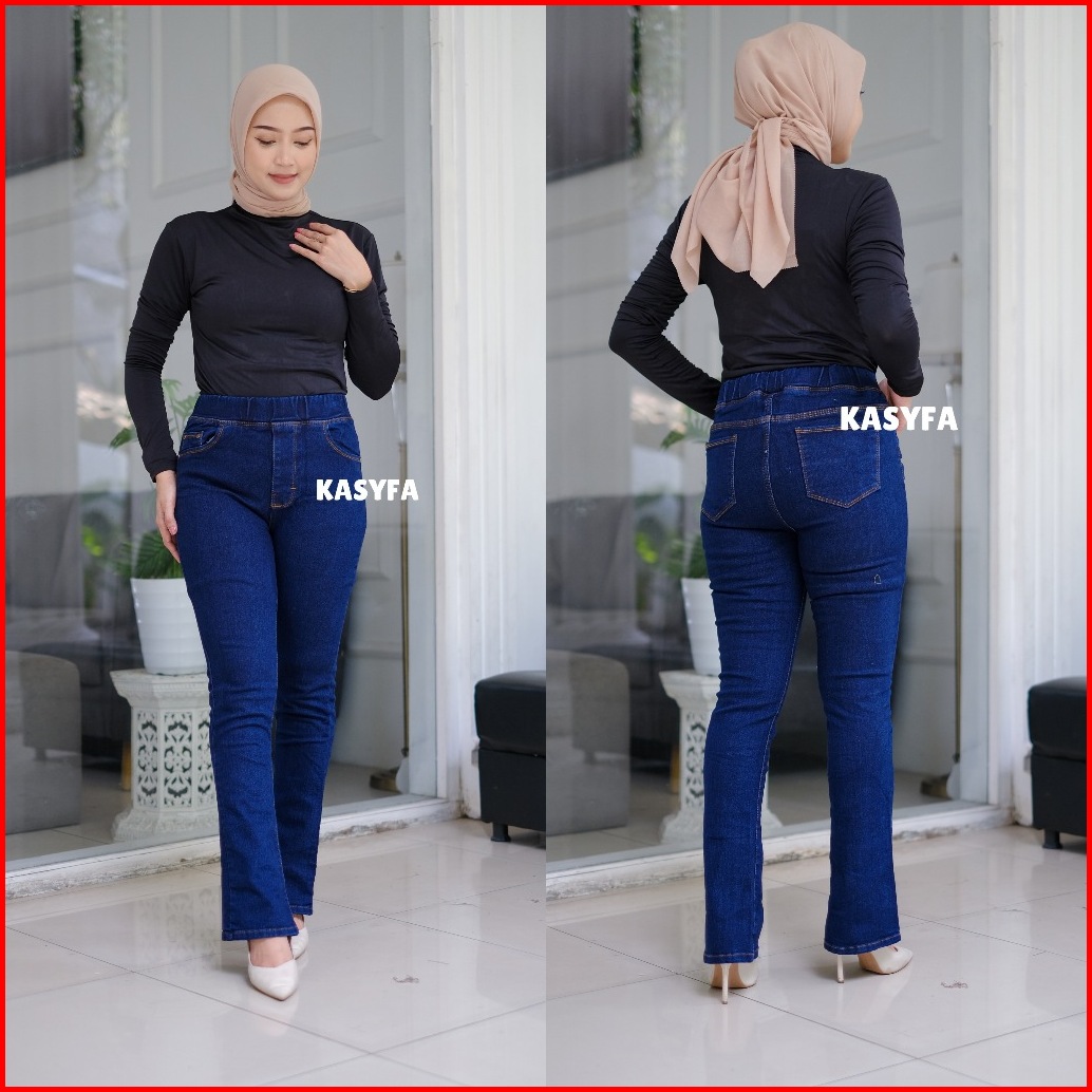 Celana Jeans Highwaist Wanita Pinggang Karet Size Jumbo Zahra