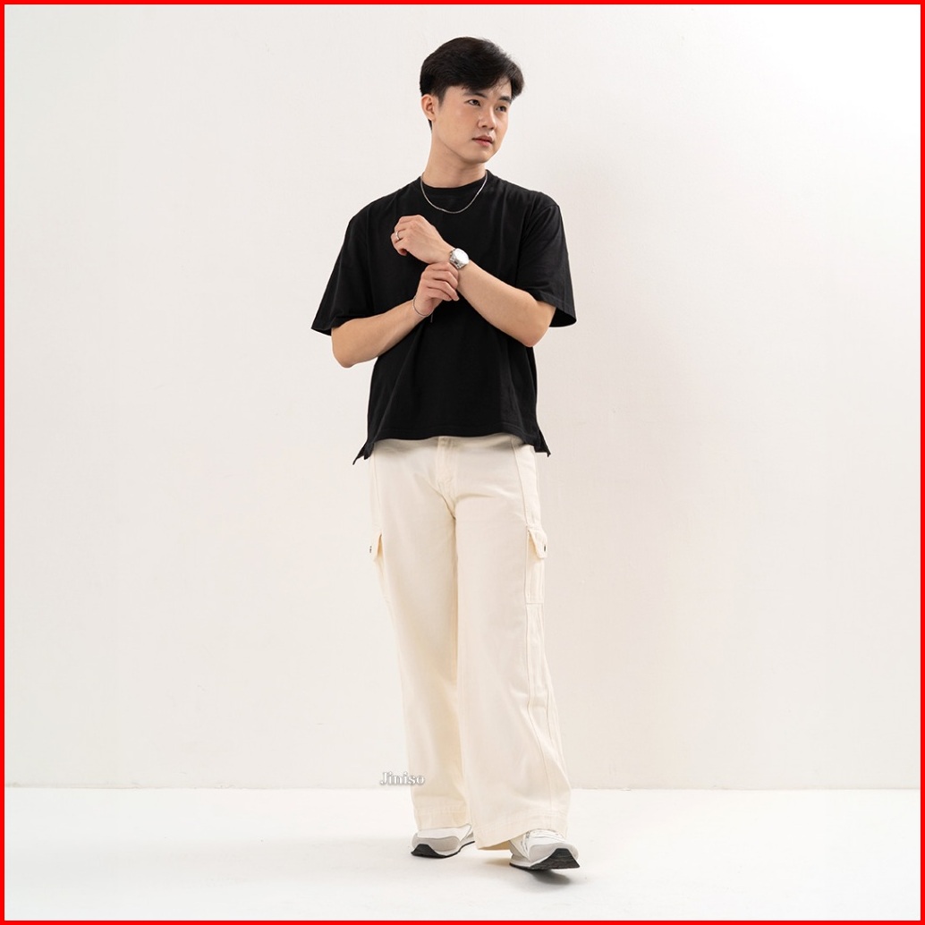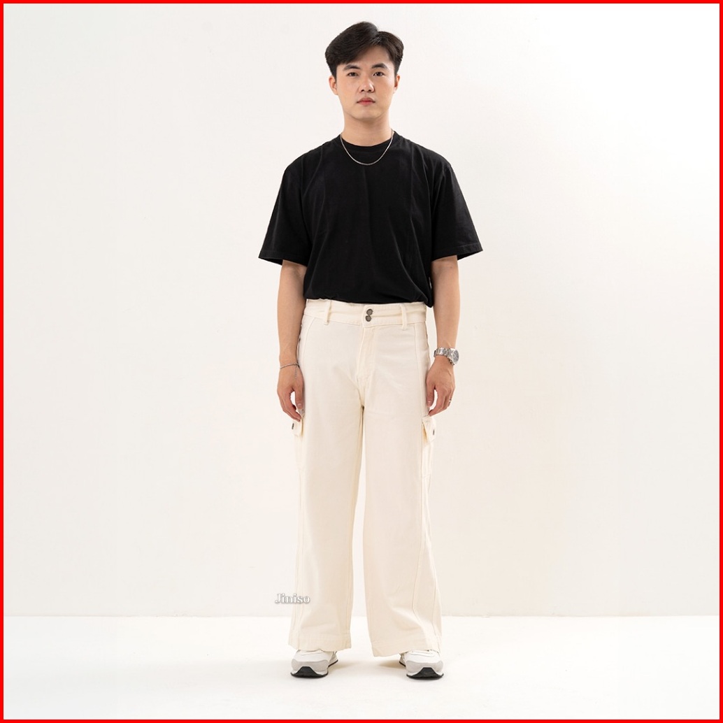 Jiniso Loose Cargo Denim Jeans Pria 403