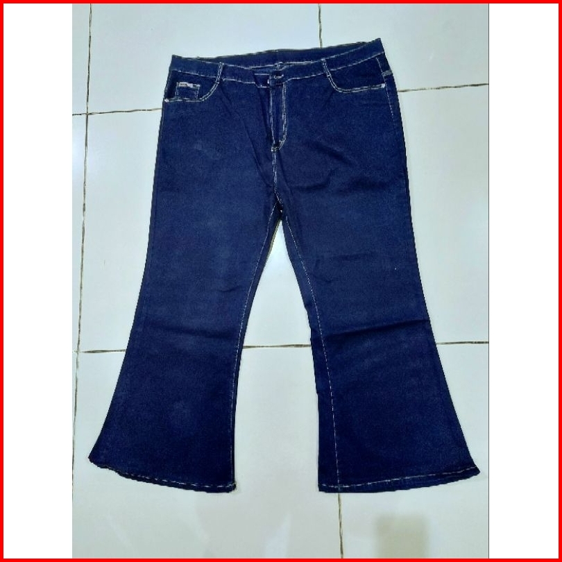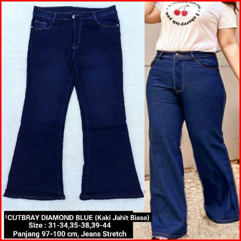 Jeans Cutbray Diamond Blue Flat Kaki Jahit Rata Diamond Blue Ada Bias Putih2 Samar Dipaha Plus Size Jeans Wanita - Size