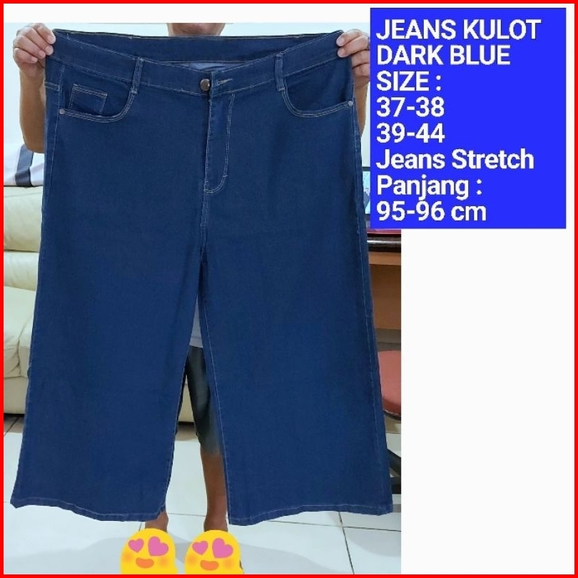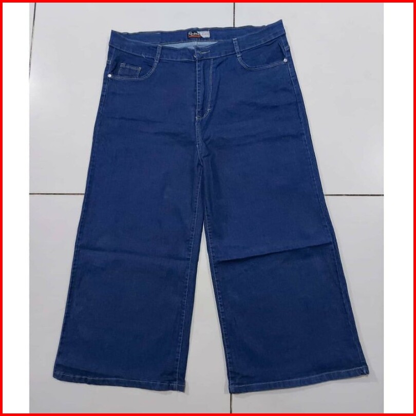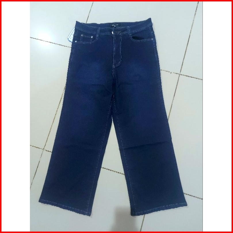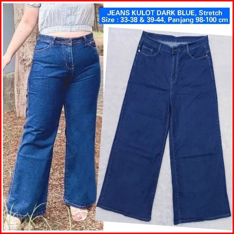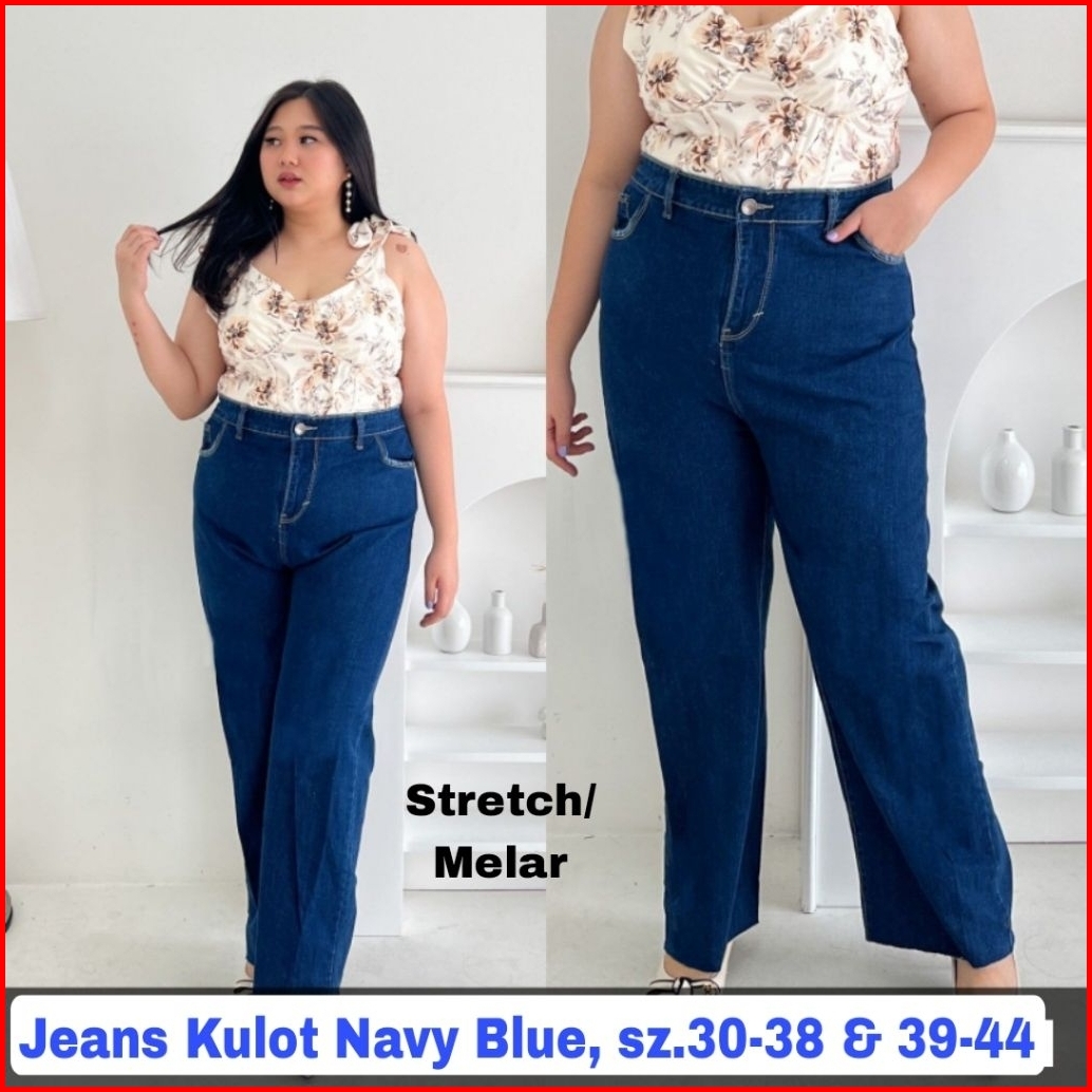 Jeans Kulot Jumbo Navy Dongker Blue Polos Jumbo Plus Size Jeans Wanita Size 31-38 39-45 - Stretch Melar