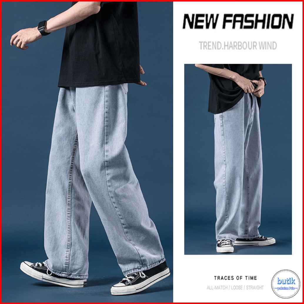 Celana Jeans Pria Celana Jeans Standar Pria Celana Kulot Pria Korean Style Baggy Pants Jeans Straight Celana Gombrong Pr