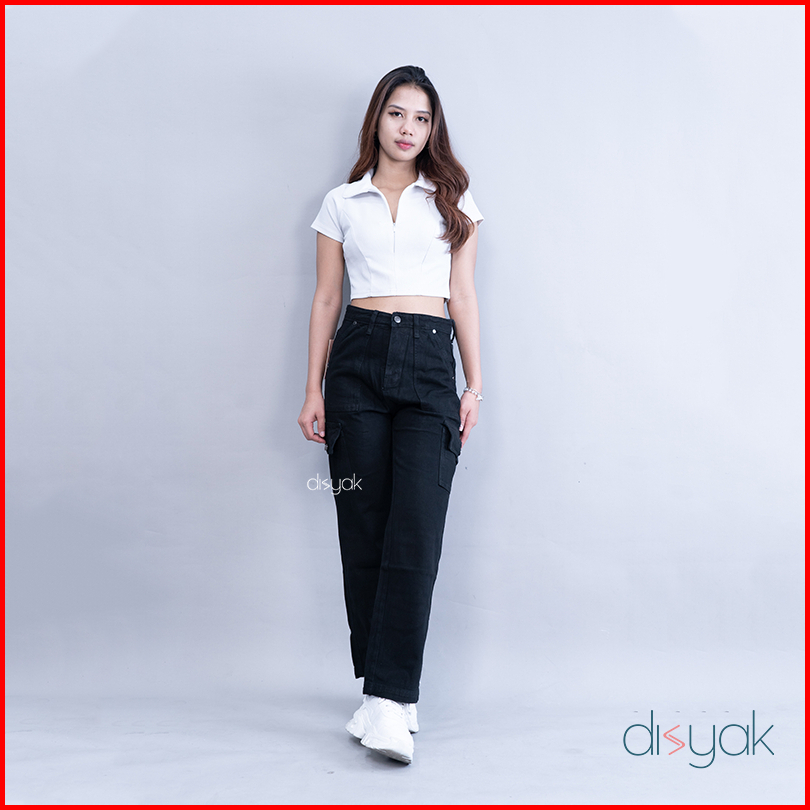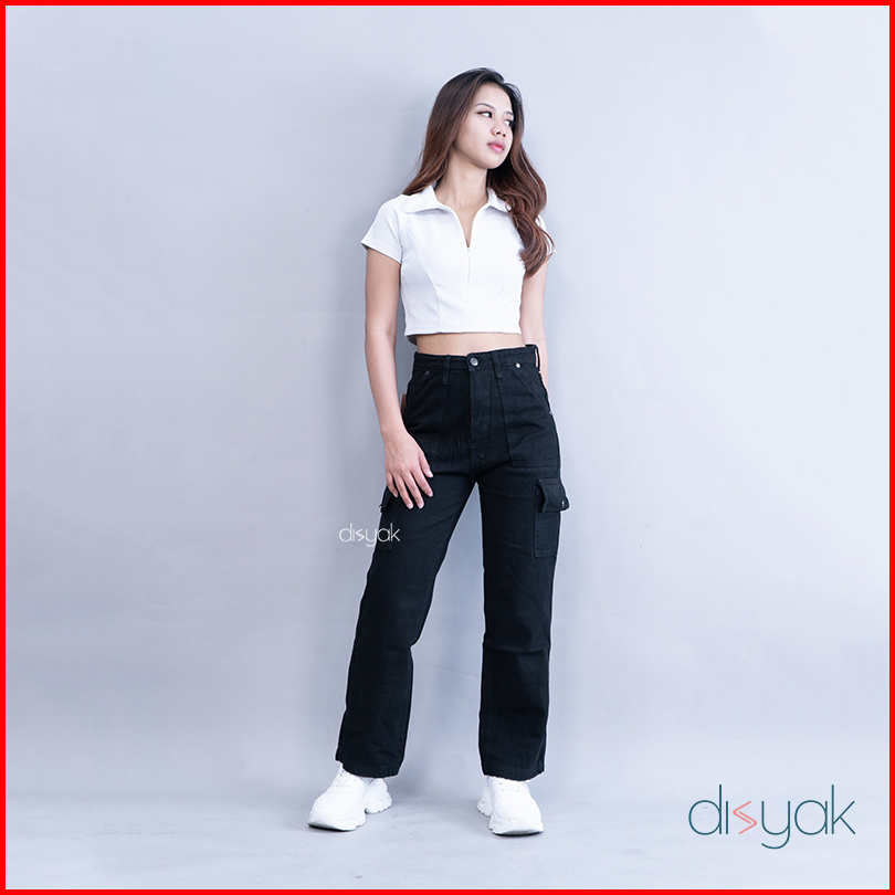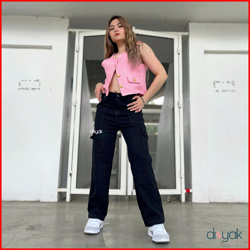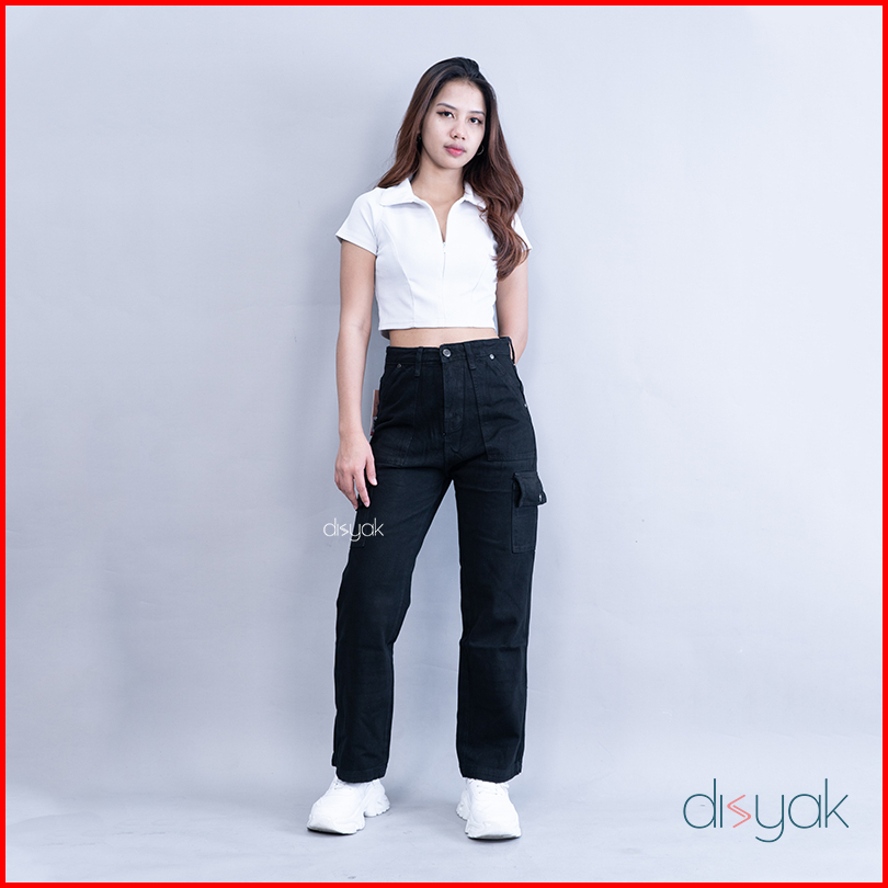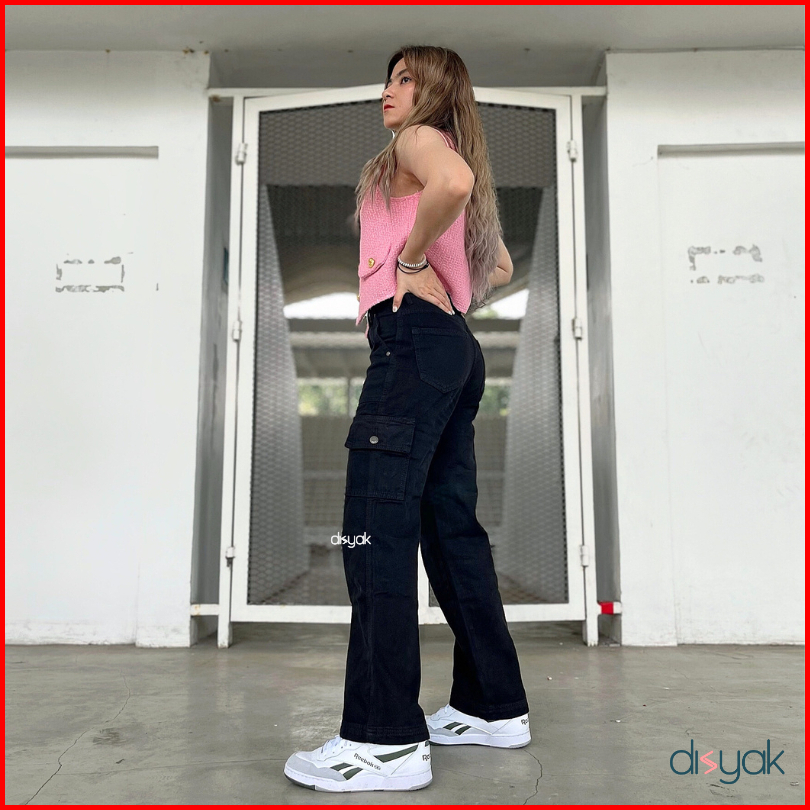 Disyak - Boyfriend Cargo Jeans Black 716-816