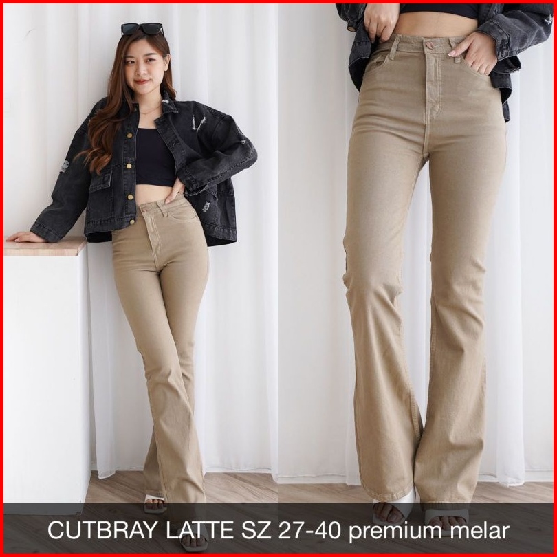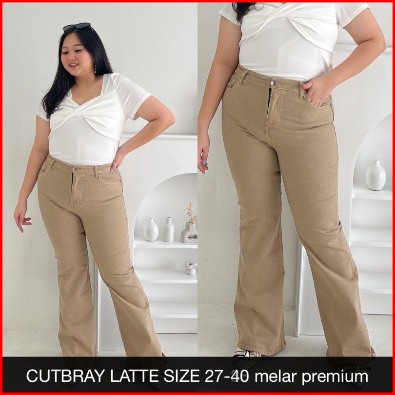 Jeans Cutbray Latte Cream Flat Ujung Kaki Jahit Rata Size 33-38 39-44