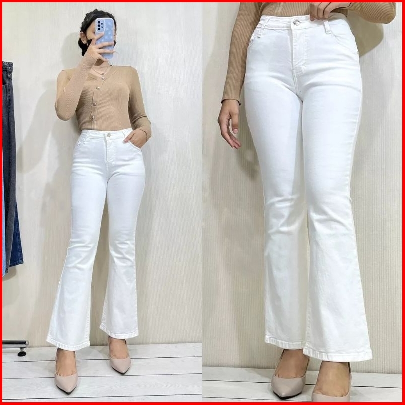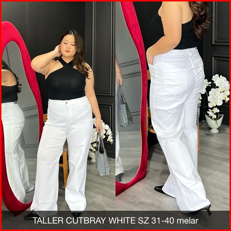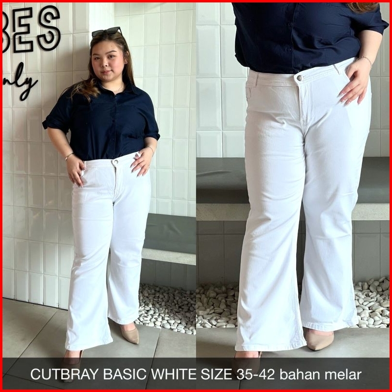 Jeans Cutbray White Cutbray Putih Flat - Super Jumbo Size 33-35 38-44 Stretch Melar