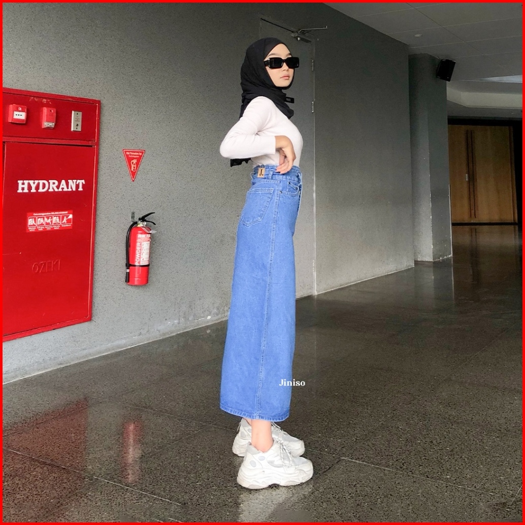 Jiniso - Highwaist Rok Slit Jeans Panjang 998 Seventy