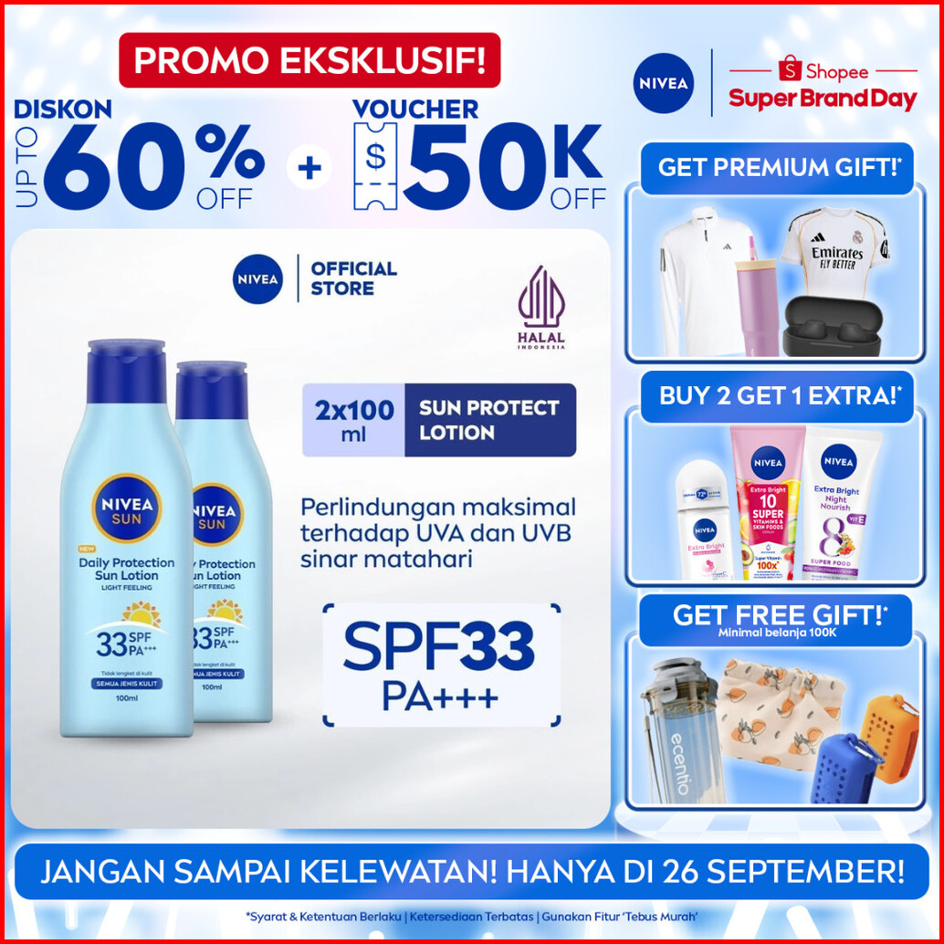 Paket Hemat Isi 2 Nivea Body Lotion Daily Protection Sun Spf33 100ml - Sunscreen Badan Lotion Sunblock Sunblok Spf Uv Me