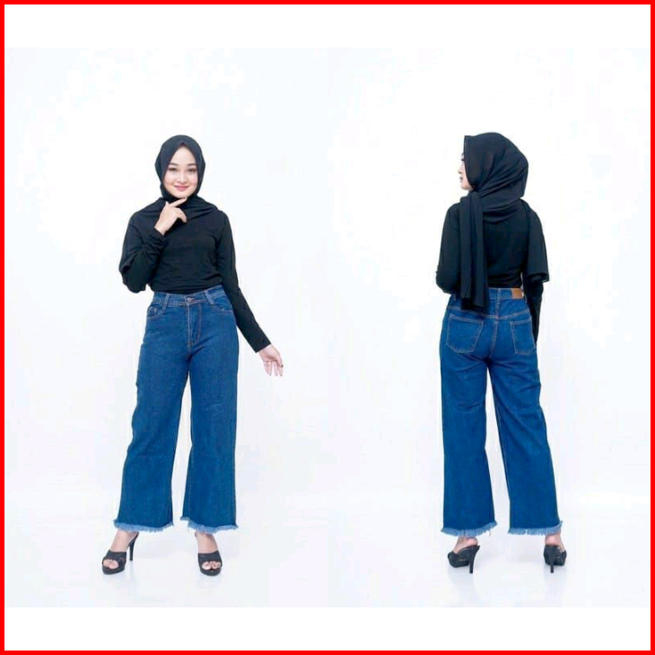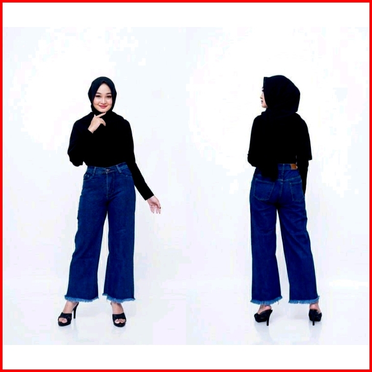 Celana Jeans Kulot Rawis Kekinian
