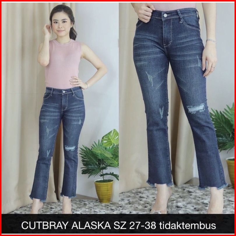 Cutbray Alaska Ripped Wanita Bootcut Jeans Import Cewe Ripped Cutbray Super Jumbo Wanita