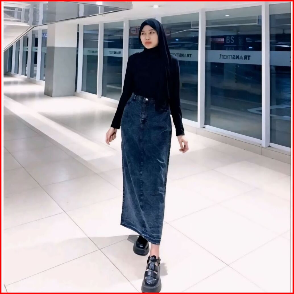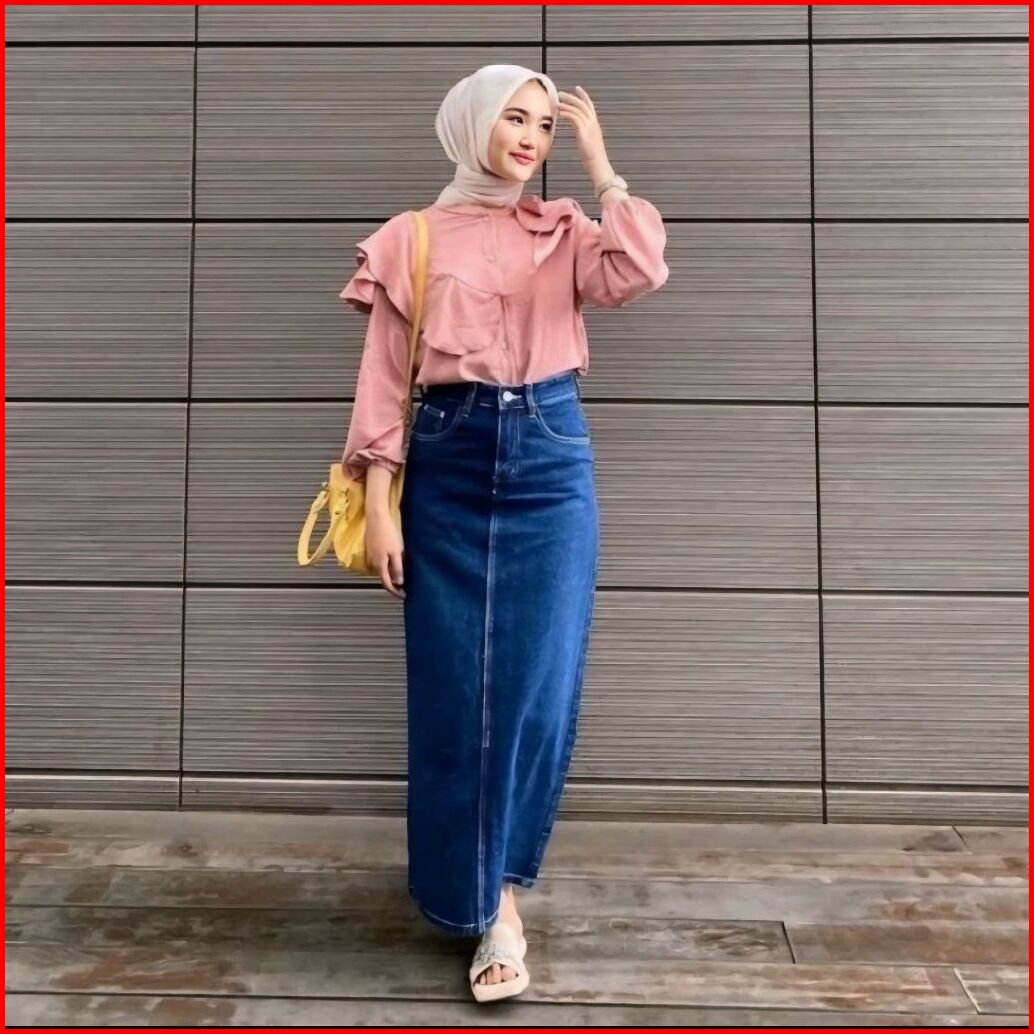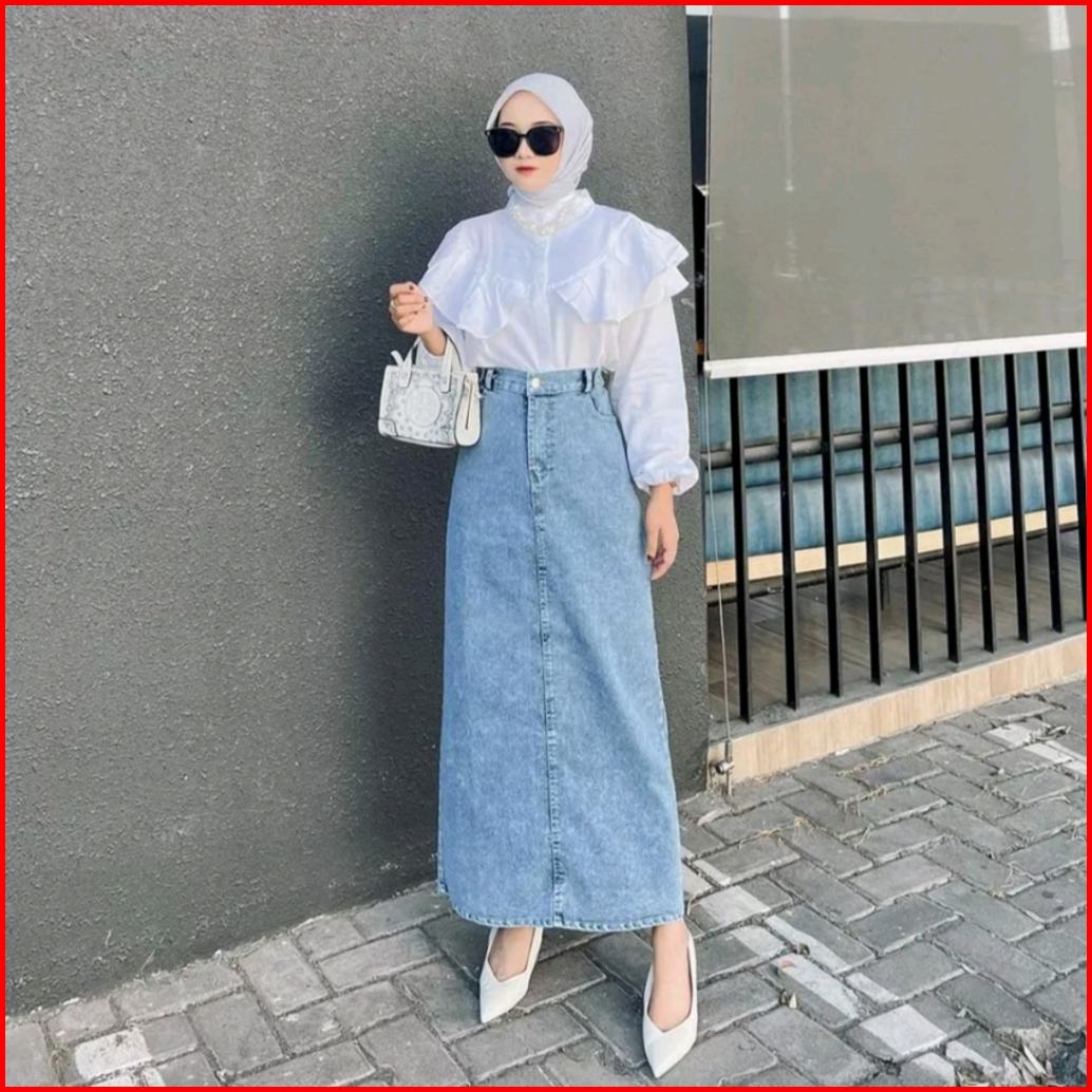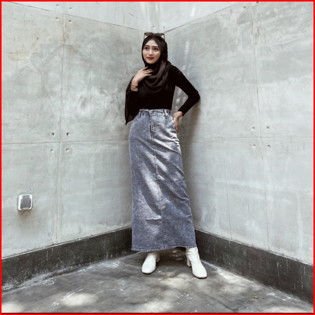 Womanseven Theana Skirt Highwaist Jeans Stretch - Rok Jeans Span Wanita