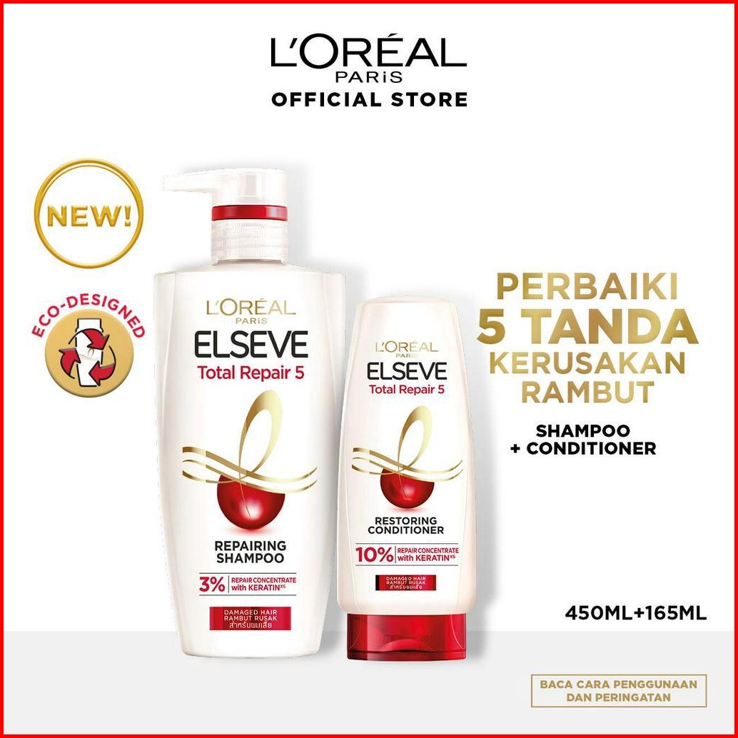 Paket Hemat L Oreal Paris Elseve Total Repair 5 Repairing Shampoo 410ml Dan Conditioner 155ml Hair Care Dengan Ceramide