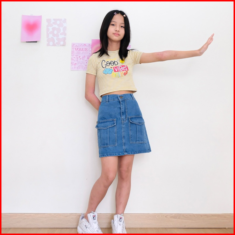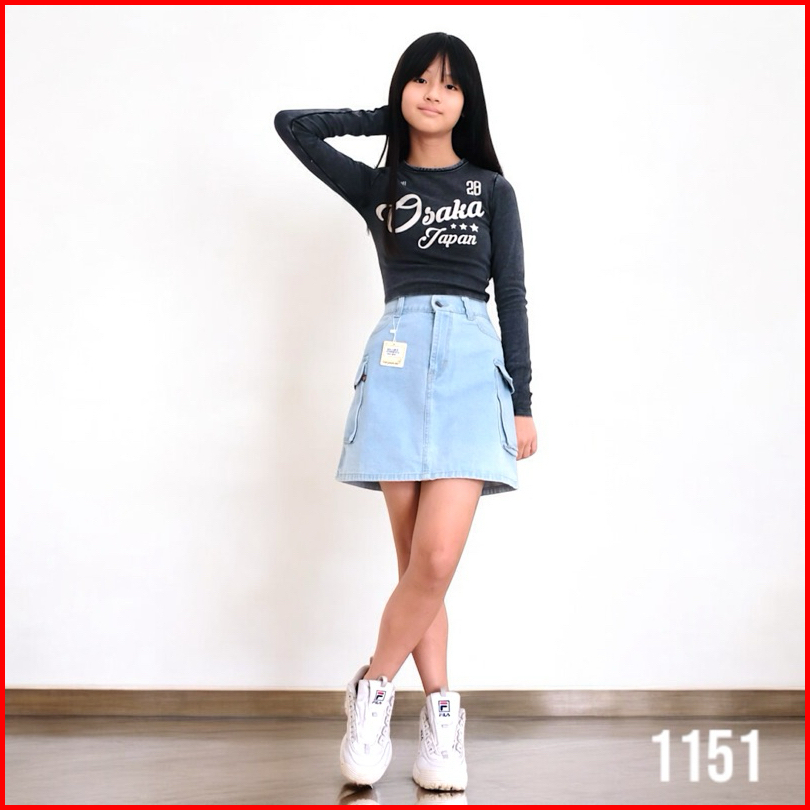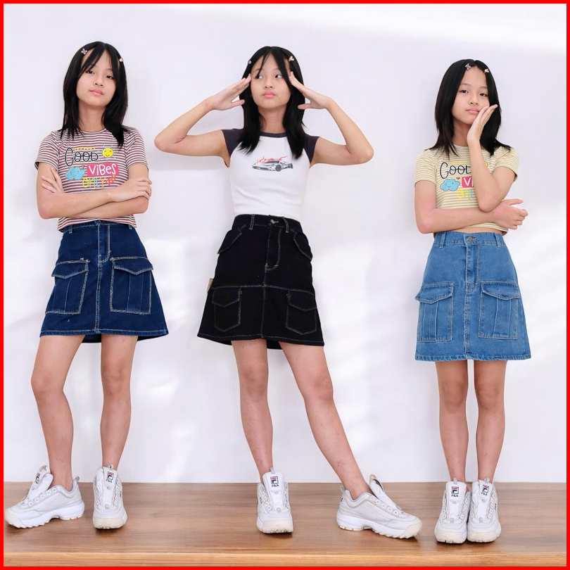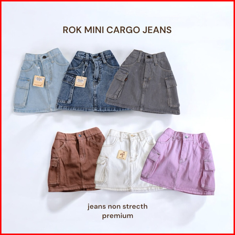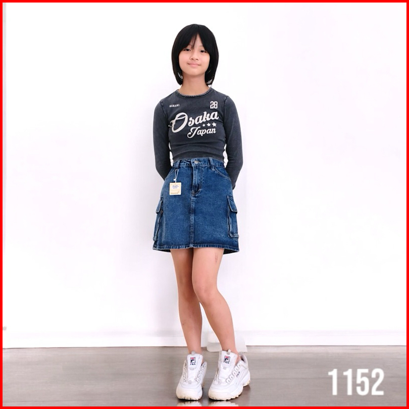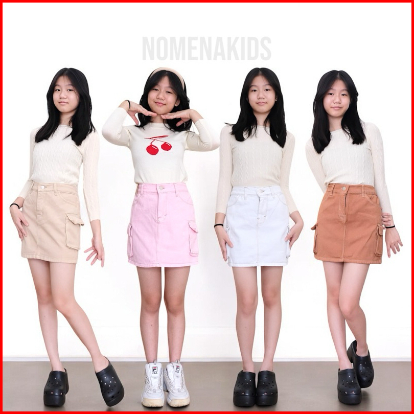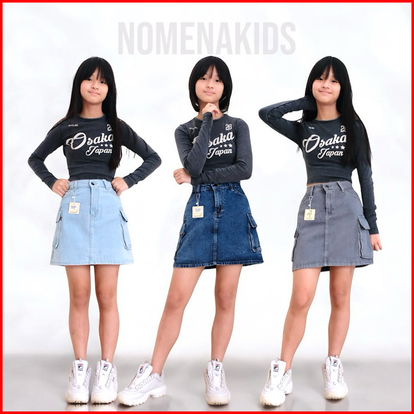 Rok Jeans Cargo Bawahan Premium Santai Motif Span Anak Perempuan Cewek 4-15 Tahun Nomenakids 1150-52