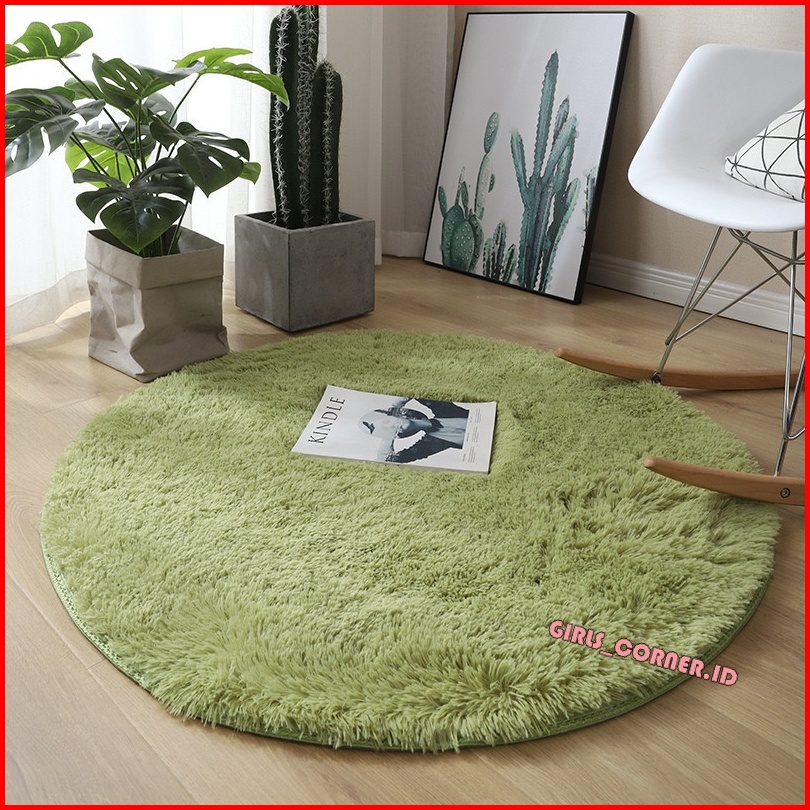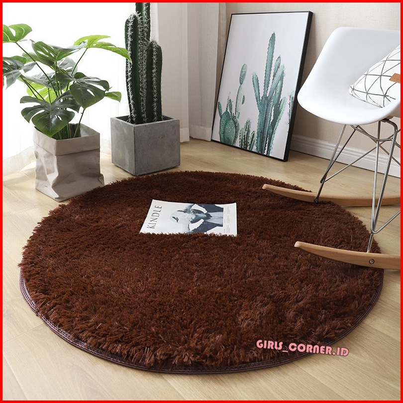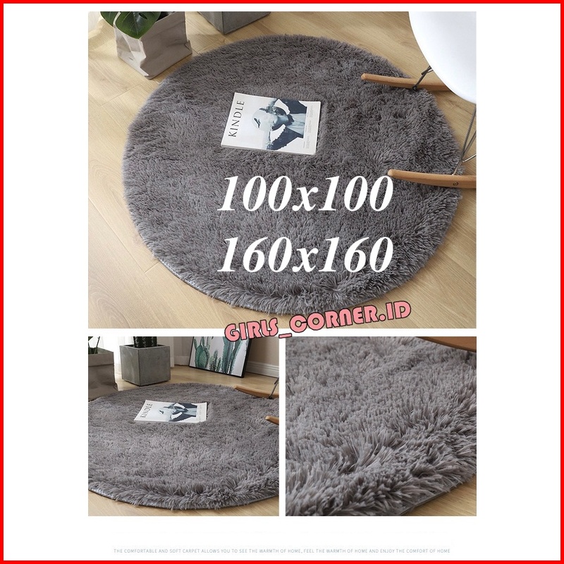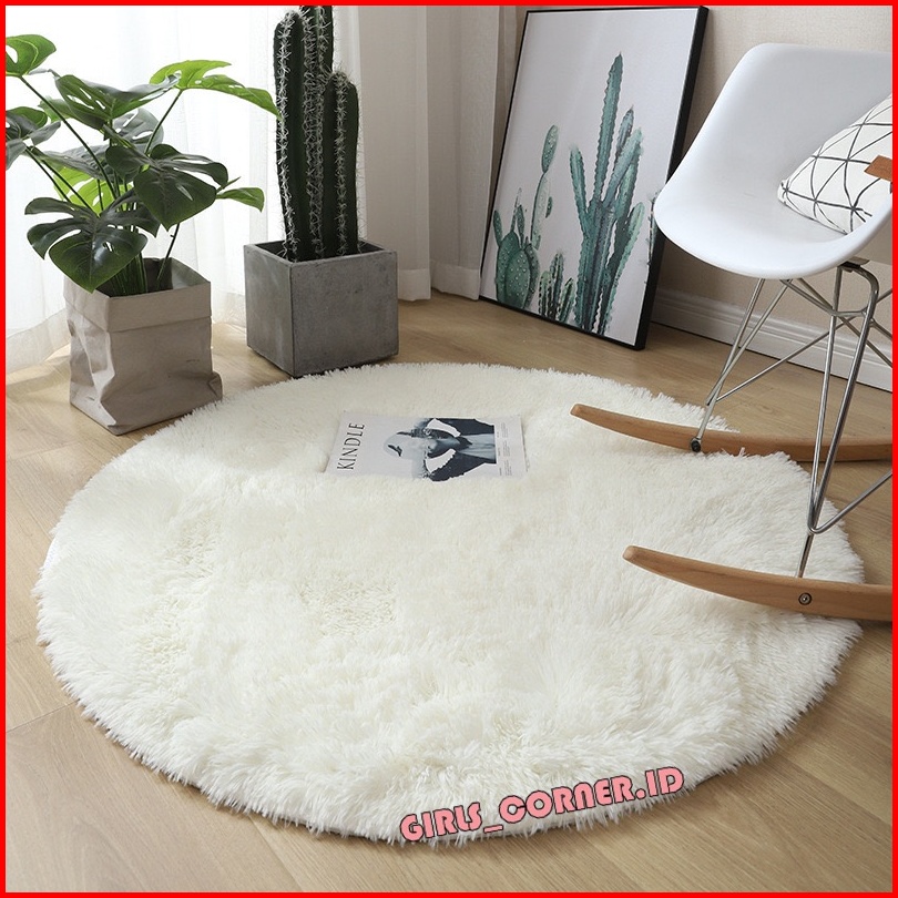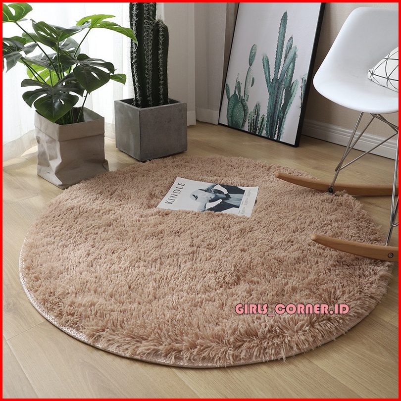 Karpet Bulat Mewah Karpet Bulu Kamar Tidur Ruang Tamu Alas Tidak Licin 100x100 160x160 Pilih Ukuran