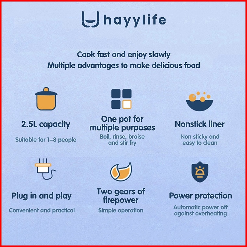 Hayylife Panci Listrik Portable Multifungsi 450w 2.5 L Electric Pot Lapisan Keramik Hl-daa754