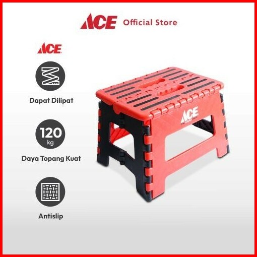 Ace Ace 22 Cm Bangku Pijak Lipat - Merah Foldable Step Stool Bangku Lipat Mini Anti Slip Kursi Pijakan Serbaguna