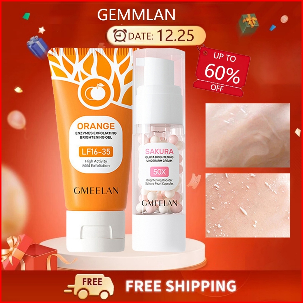 Gmeelan 2pcs Set New Upgraded Model Gel Pengelupasan Orange Darah 50g Krim Pemutih Ketiak Bunga Sakura Bersih 30g Pemuti