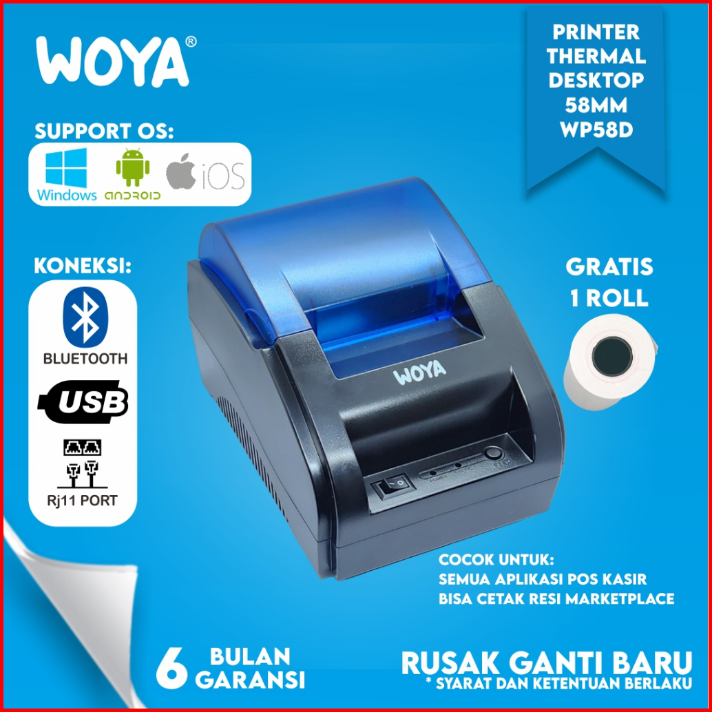 Woya Printer Bluetooth Desktop Thermal Kasir 58mm Woya Wp58d - Kasir Rj11 Rpp02 Cetak Resi Struk Penjualan Support Gobiz