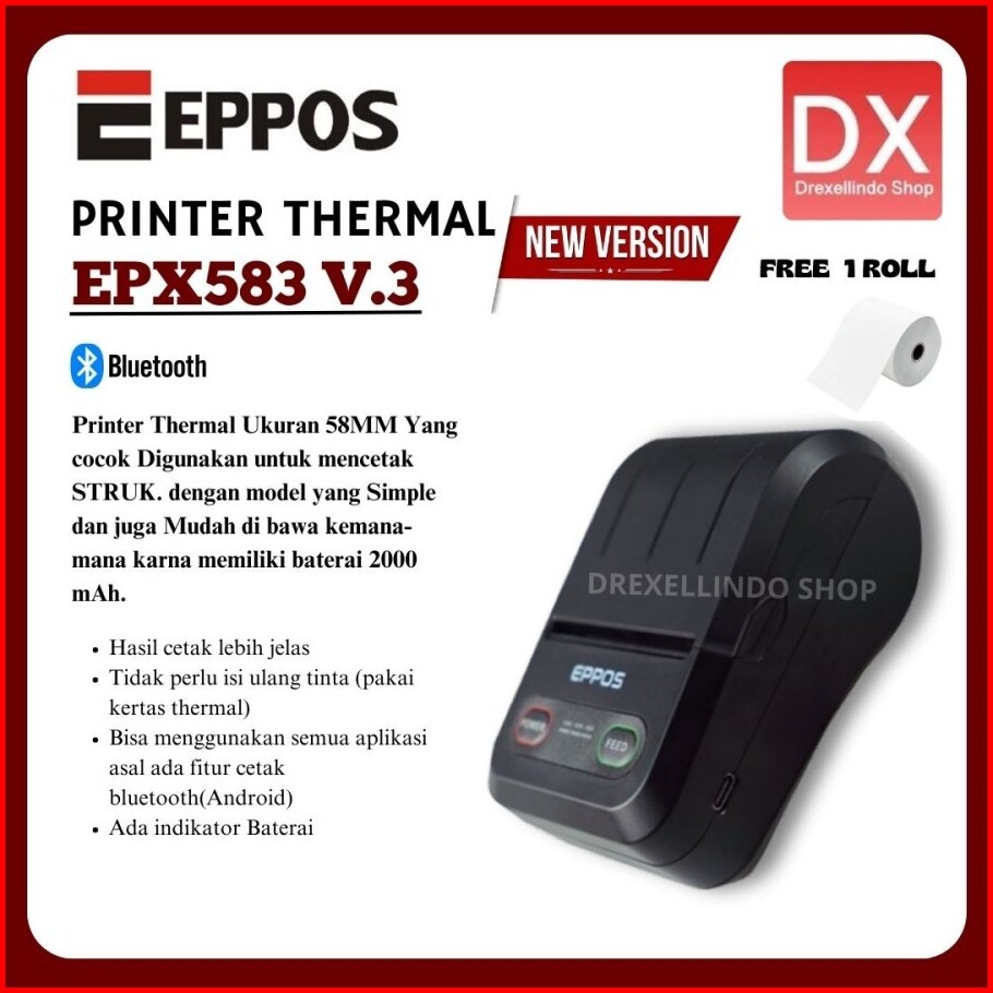 Mobile Printer Thermal 58mm Bluetooth Eppos Epx583 Epx-583 V3 Usb Bluetooth
