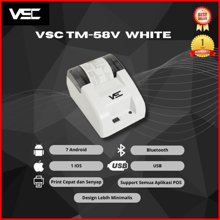 Printer Thermal Bluetooth Vsc Tm-58v White Rpp02n Bergaransi Free Kertas 1 Roll
