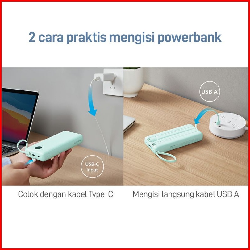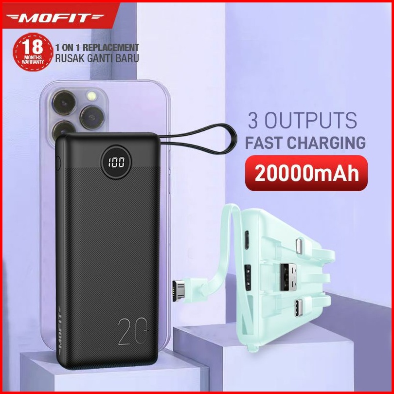 Hanya Di Powerbank Mofit M26 20000mah Build In Cable Fast Charge 2.4a Real Capacity