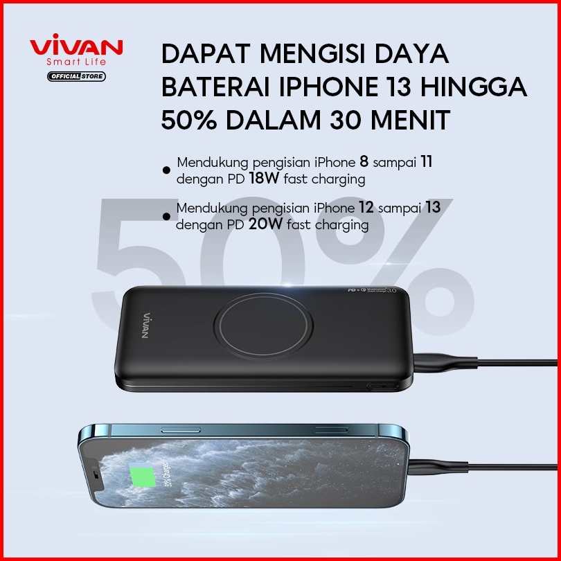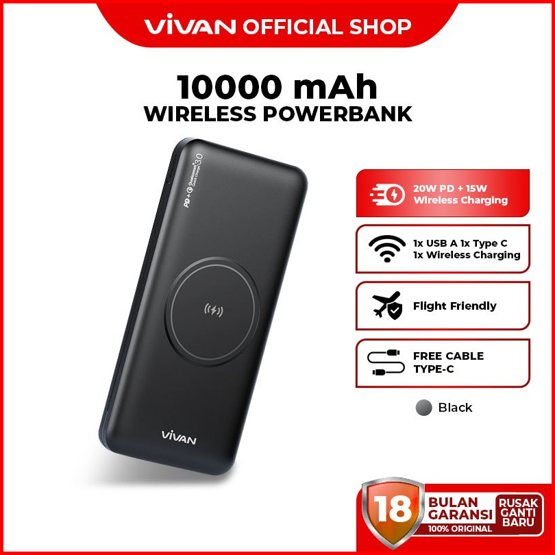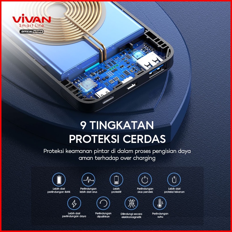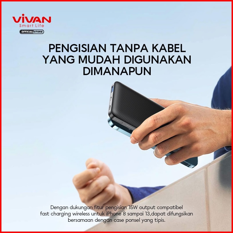Vivan Wireless Powerbank 10000 Mah 3 Output Fast Charging 20w Pd Vpb-w11 Garansi 12 Bulan