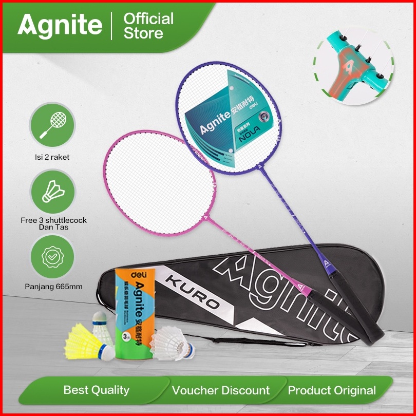 Agnite Badminton Racket Raket Badminton Raket Bulutangkis Set Isi 2 Shuttlecock Fh10x
