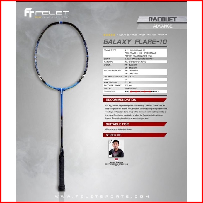 Raket Badminton Felet 32lbs Galaxy Flare 10 Aero Mars 10 Galxyflare Aeromars Original