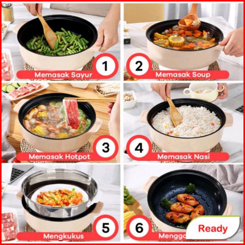Panci Listrik Elektrik Multifungsi Kukusan Streamer Lapis Keramik Pot Rebus Kukus Goreng