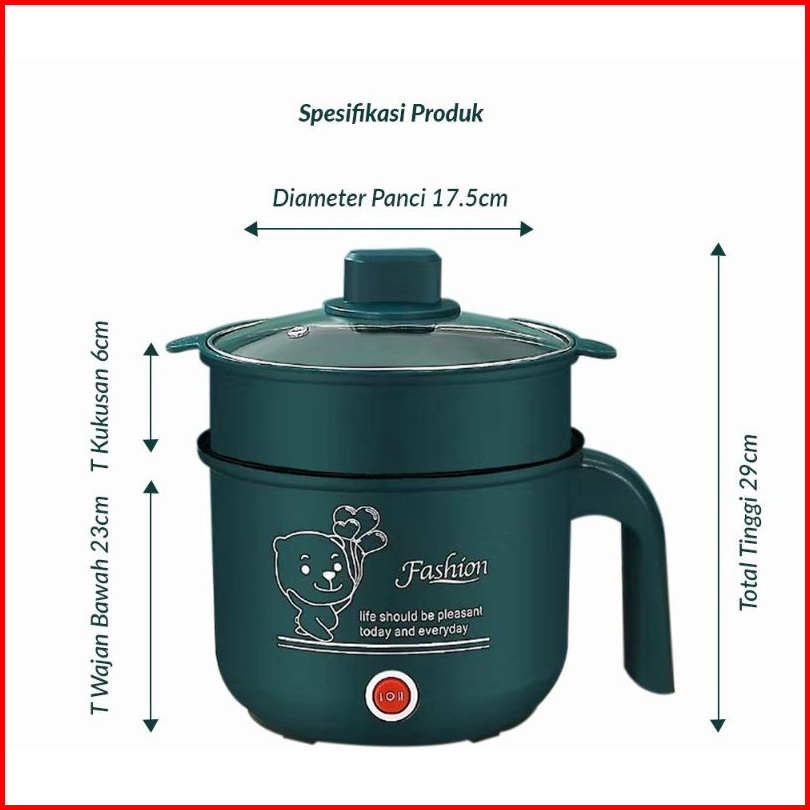 Panci Listrik Elektrik Free Kukusan Stainless Steel Panci Penggorengan 0.8l Anti Lengket Teflon Listrik