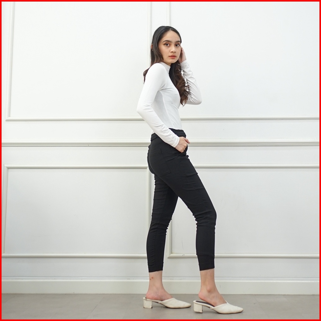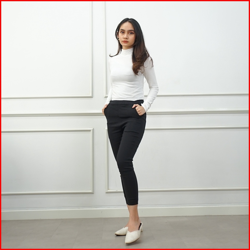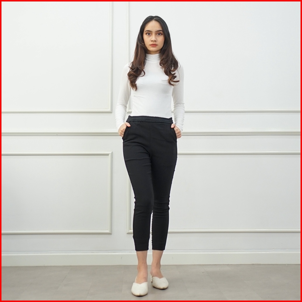 Ie.demode Elisa Celana Panjang Wanita Jumbo Kerja Kantor Karet Fit Pants Bahan Soft Jeans Hitam