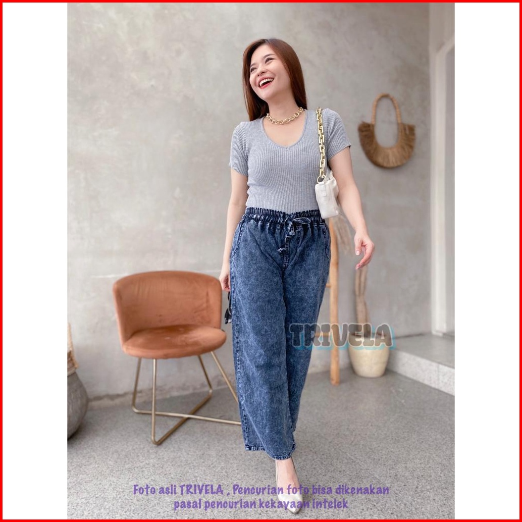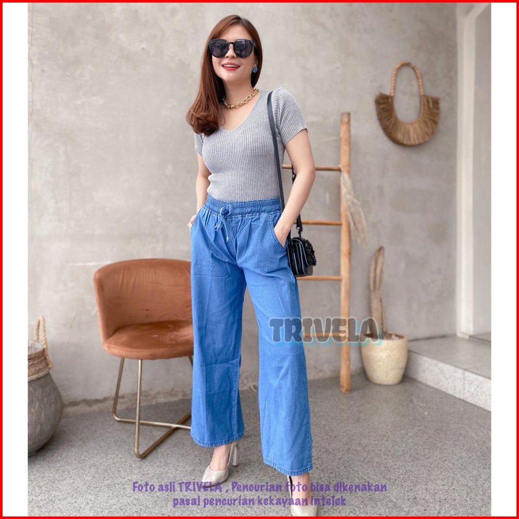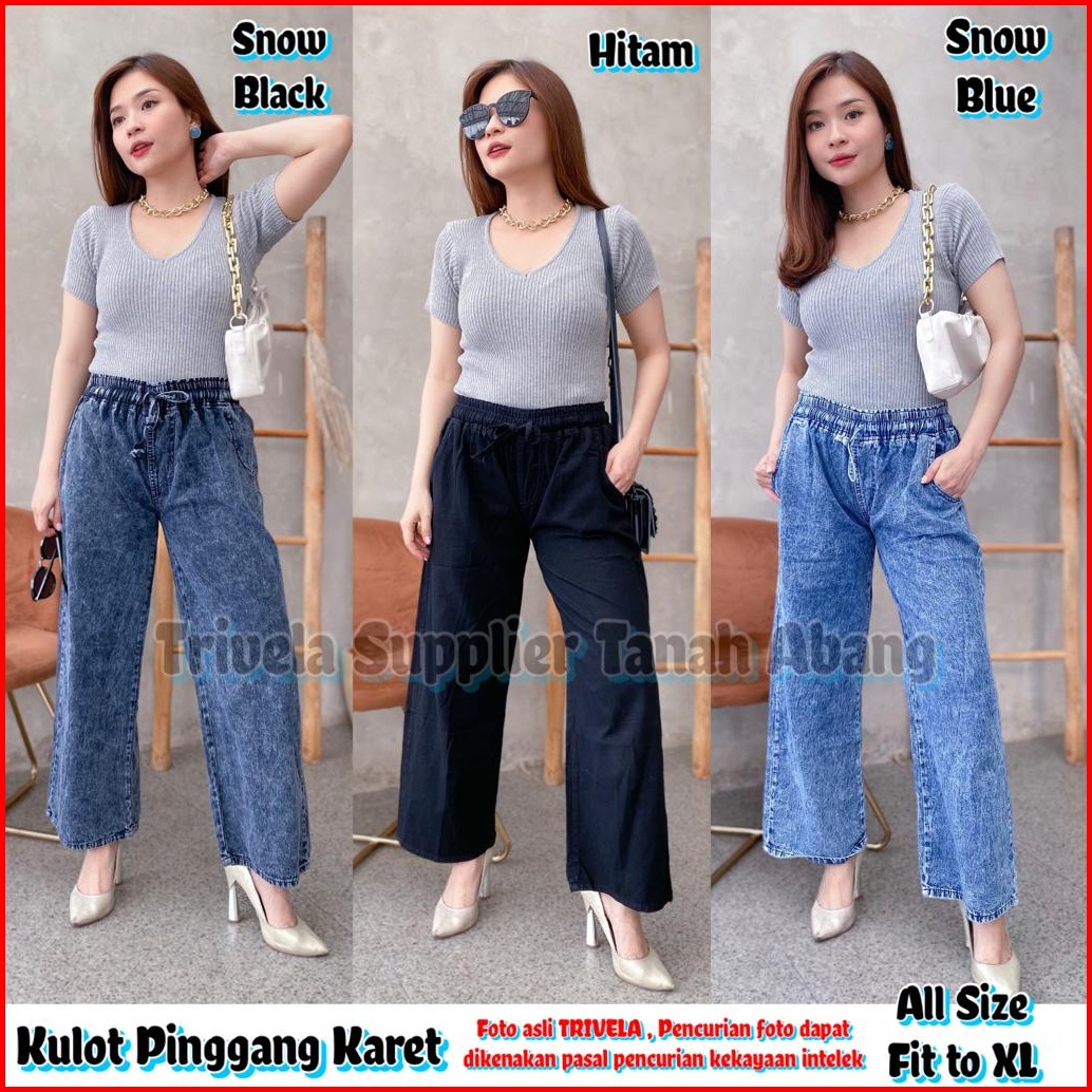 Trivela - Jeans Kulot Pinggang Karet Snow Jeans Kulot Tali Depan Kulot Jeans Jumbo Kulot Jeans All Size 6 Warna Karetall