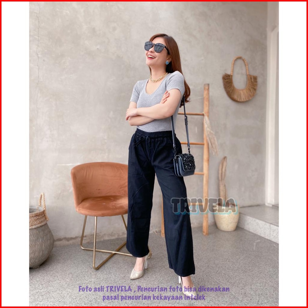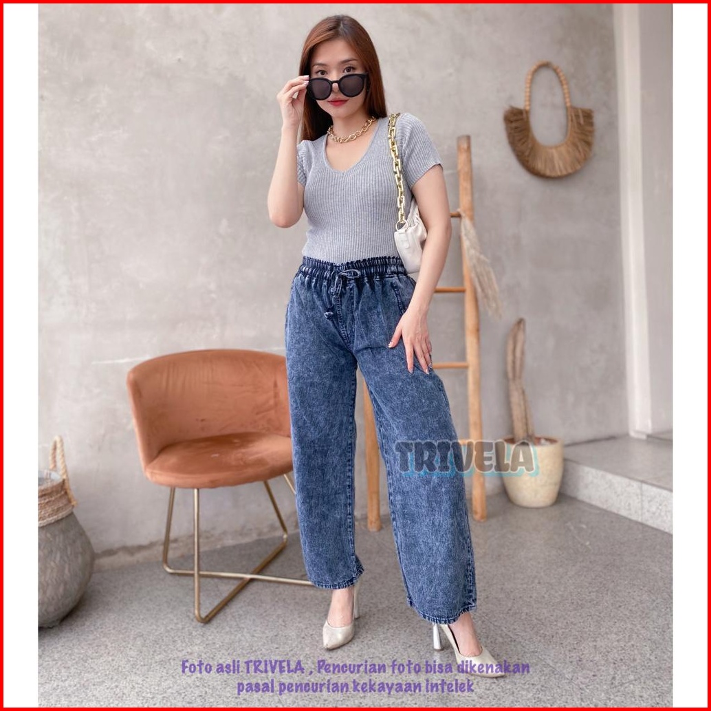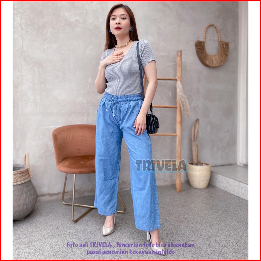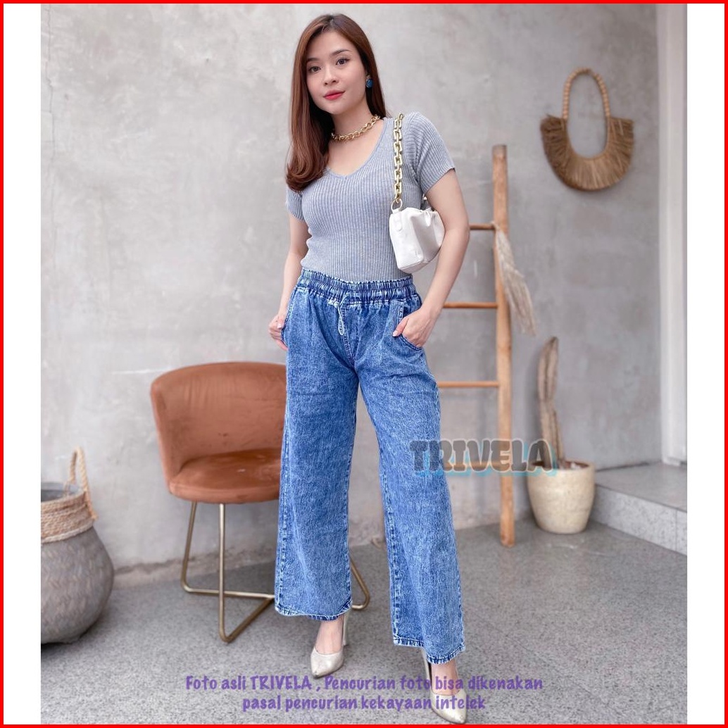 Trivela - Jeans Kulot Pinggang Karet Snow Jeans Kulot Tali Depan Kulot Jeans Jumbo Kulot Jeans All Size 6 Warna Karetall