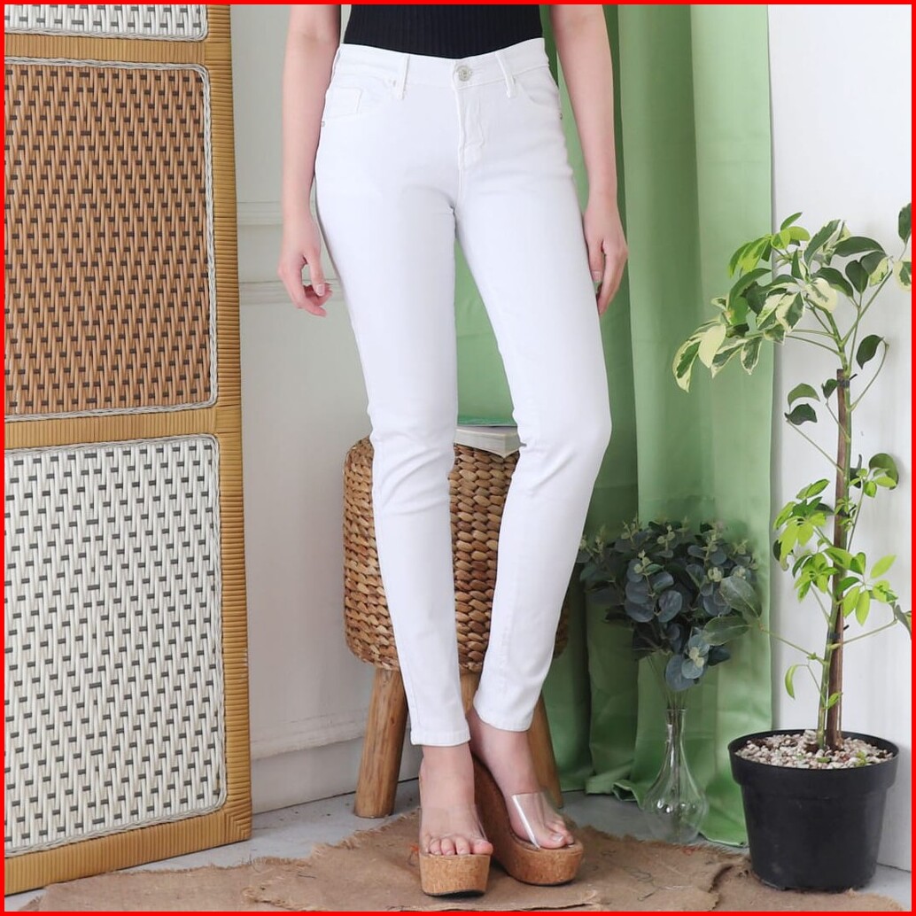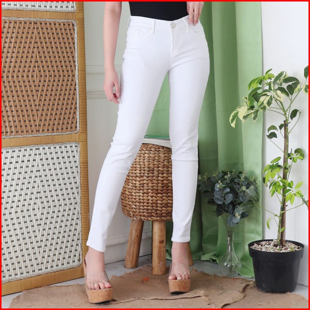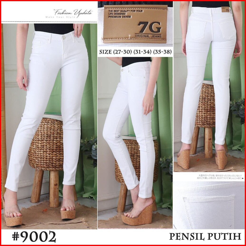 7c-g Celana Jeans Premium Pensil Putih Skinny Jeans Streacht Big Size Jumbo Size 27 - 38