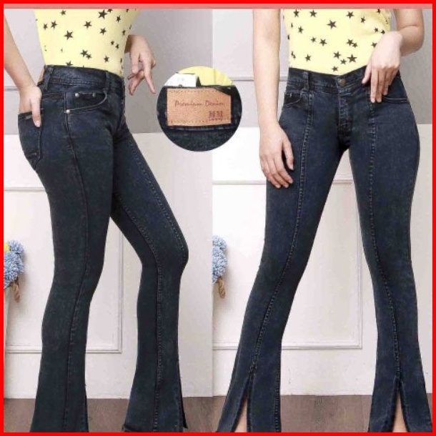 Celana Jeans Wanita Cutbray Highwaist Tulang Belah Depan