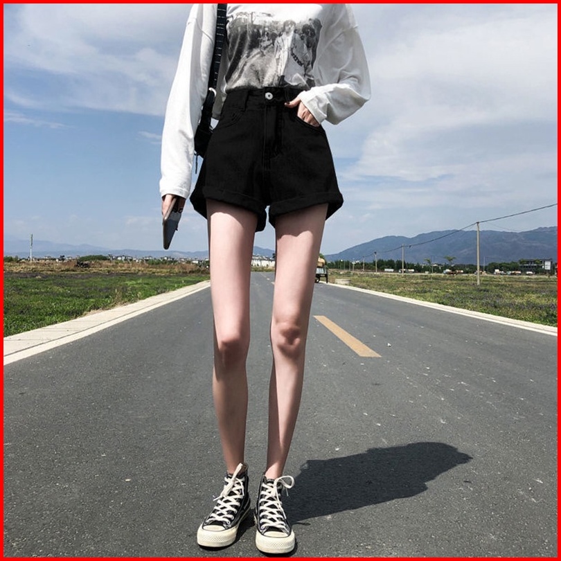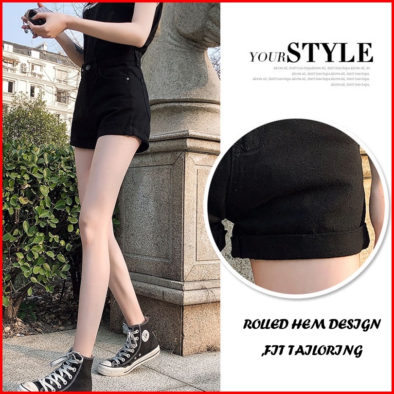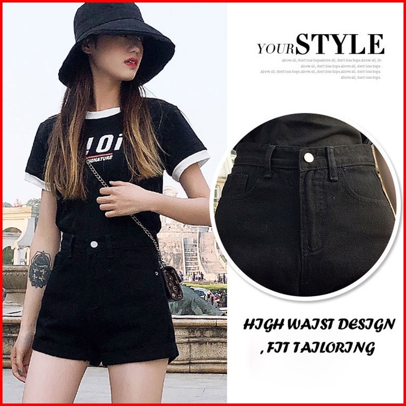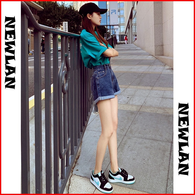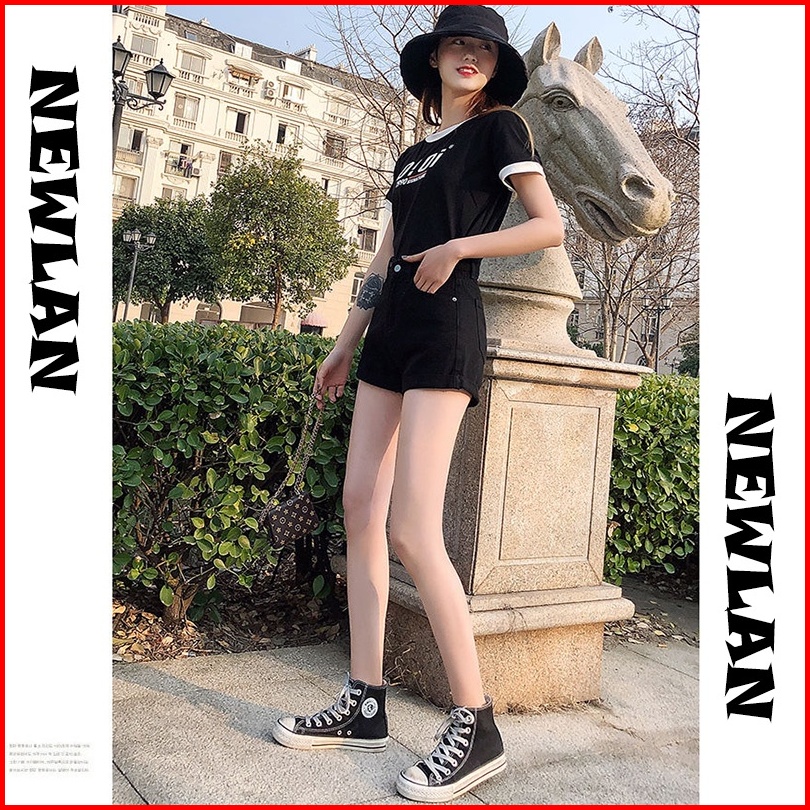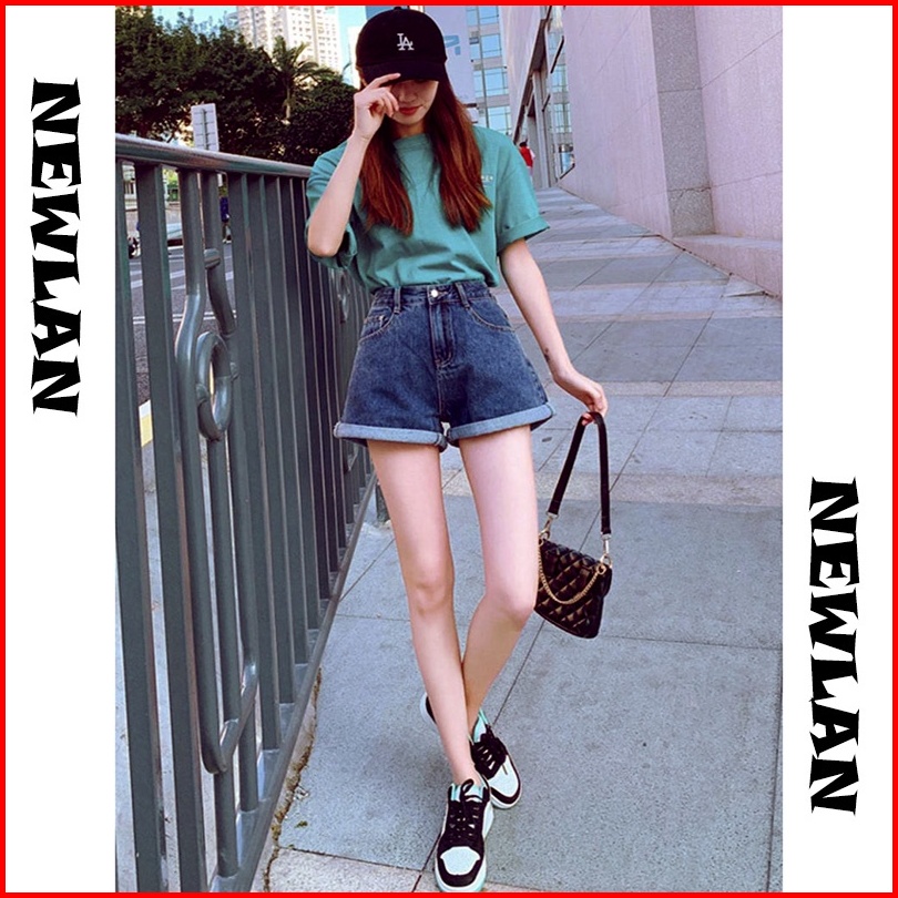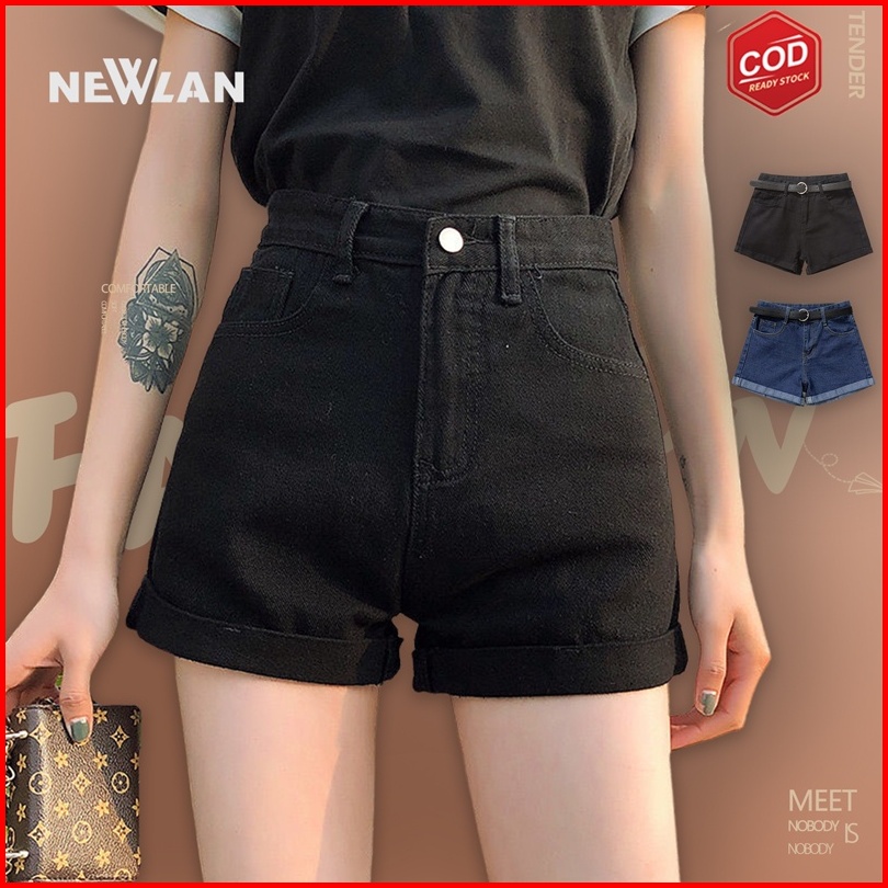 Newlan Dk005 Hot Pants Korean Celana Pendek Denim Pinggang Tinggi Wanita