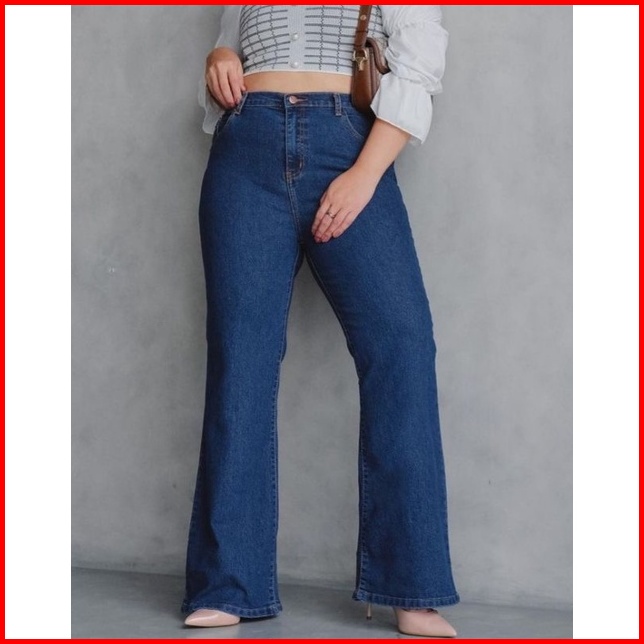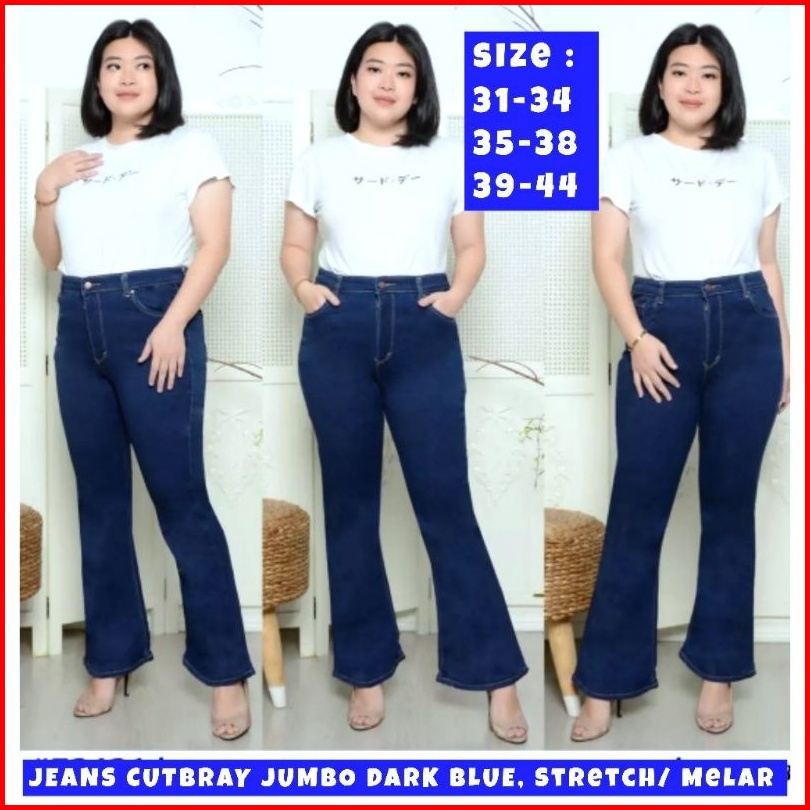 Jeans Cutbray Jumbo Dark Blue Plain Polos - Stretch Plus Size Jeans Wanita Size 31-38 39-44