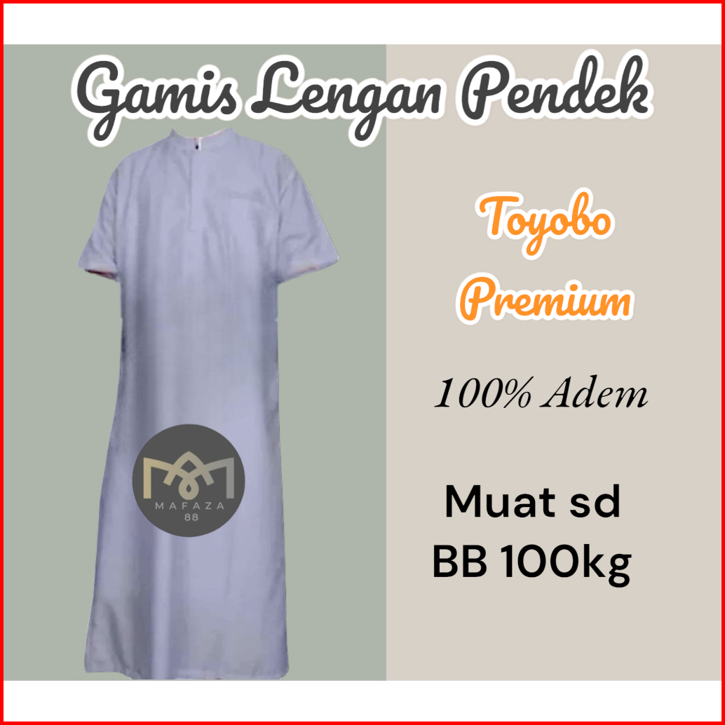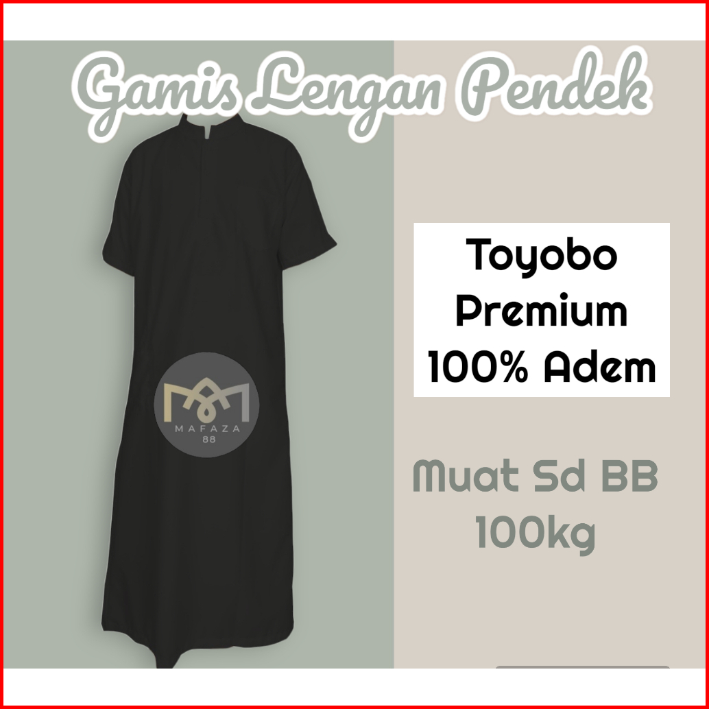 Gamis Jubah Muslim Pria Toyobo Premium Adem Lengan Pendek Polos Sholat Umroh Lebaran