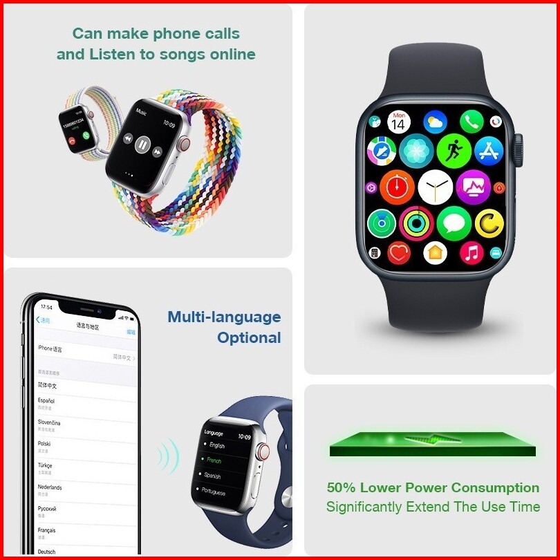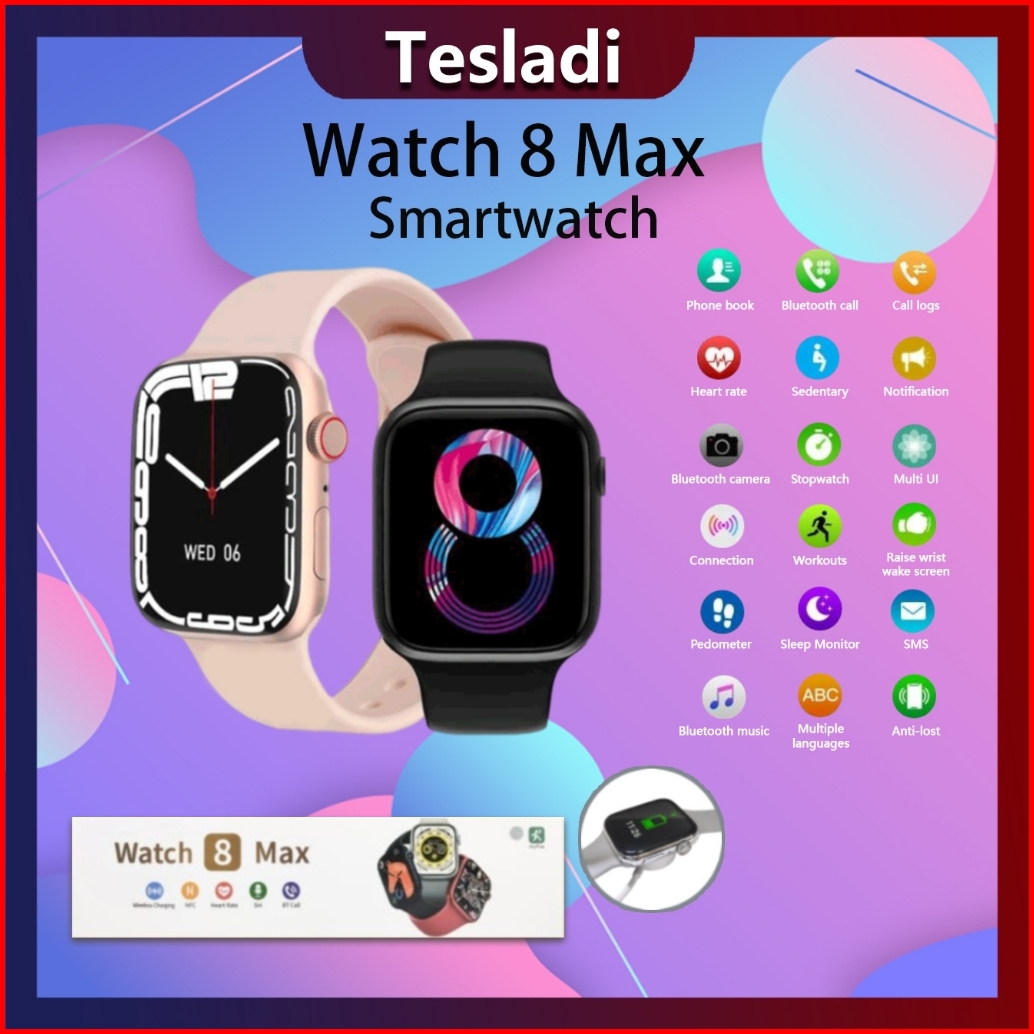 Tesladi Smartwatch Watch8 Max 1.85 Inches Full Square Screen Nfc Bluetooth Call Jam Tangan Pintar Ip67 Waterproof Heart