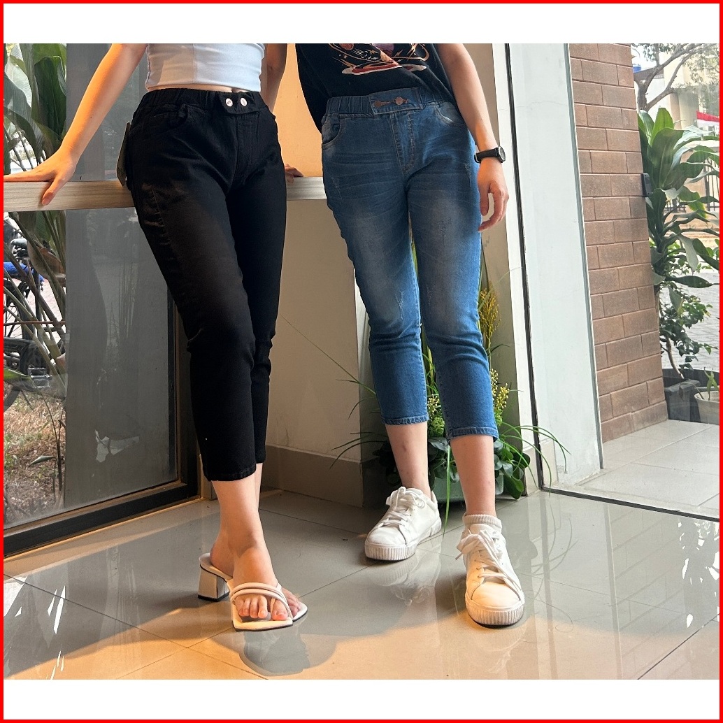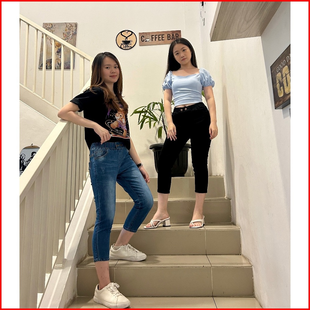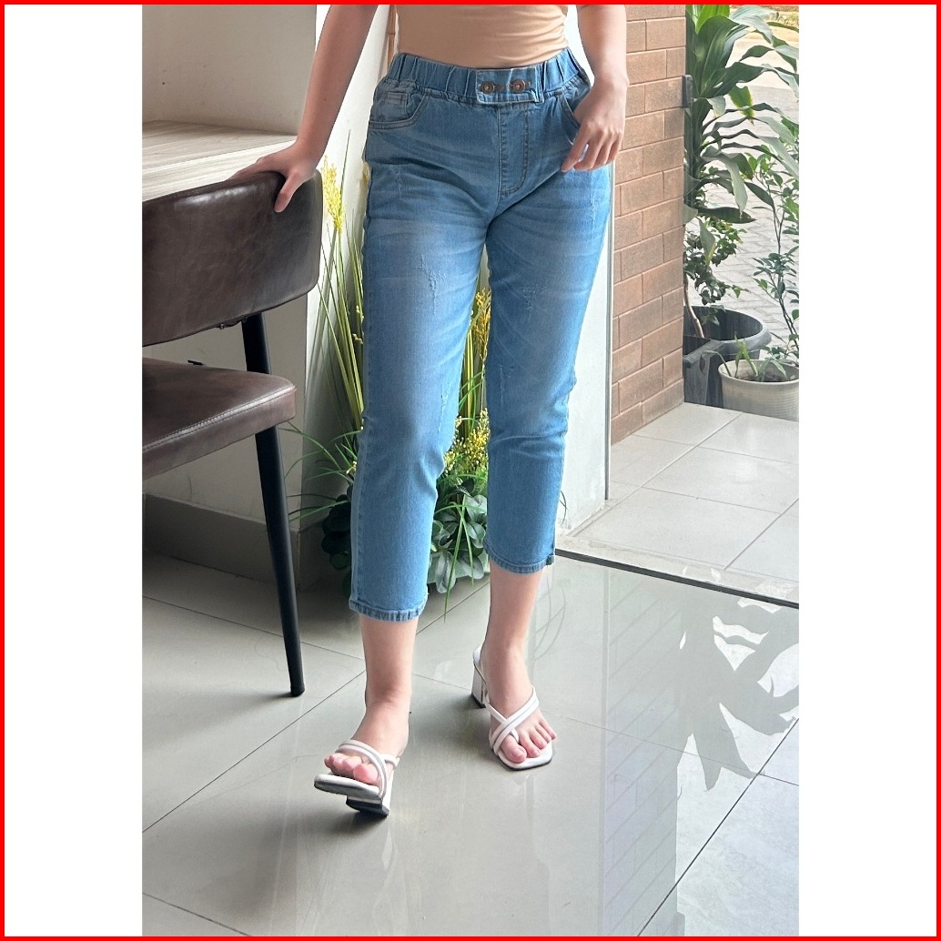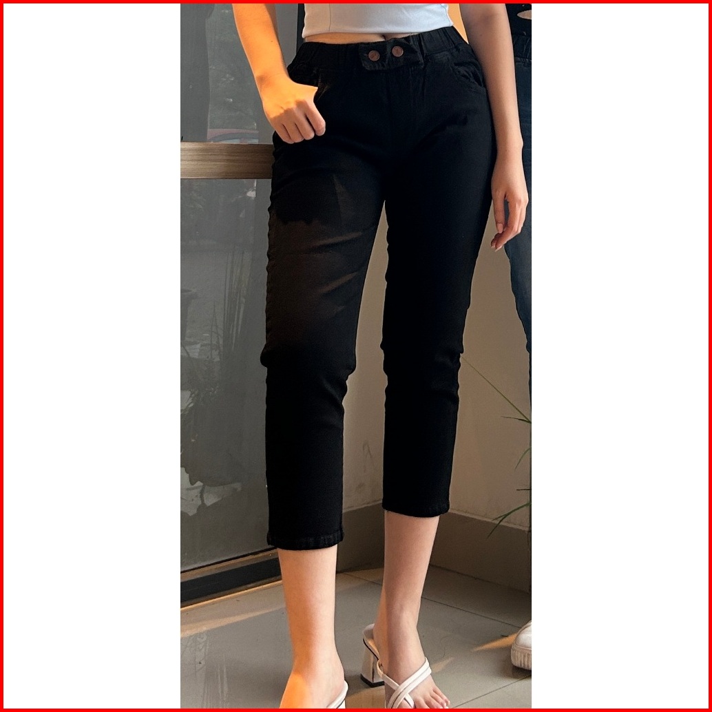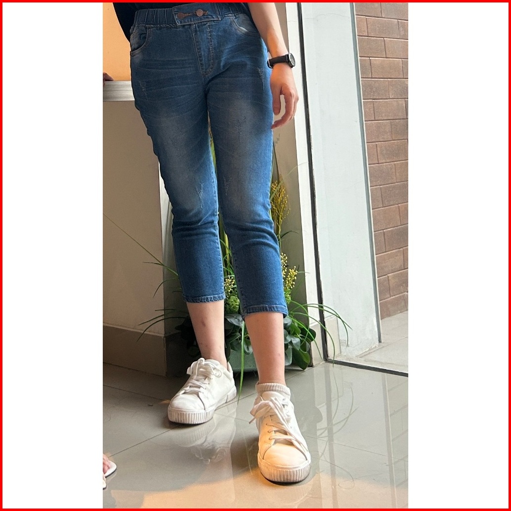 Celana Jeans Pensil 7 9 Polos Pinggang Karet Celana 7 9 Wanita