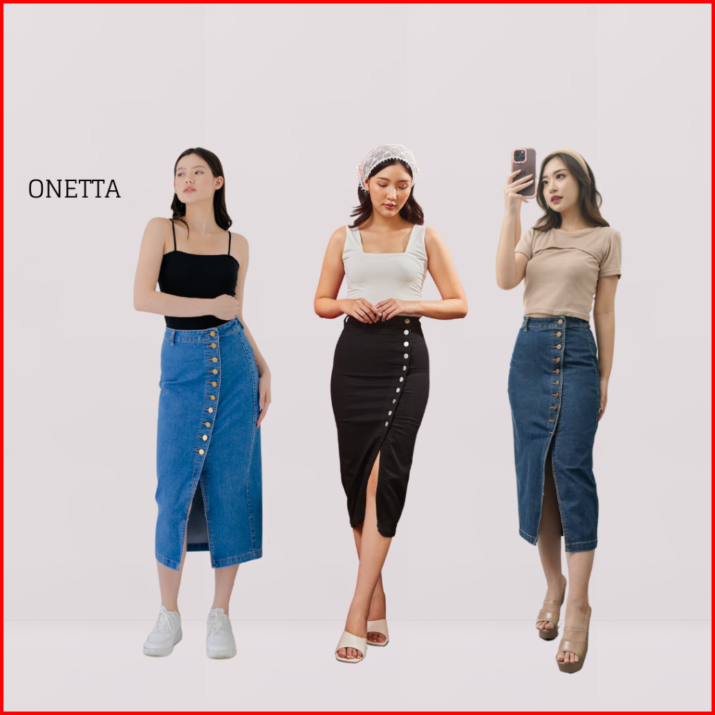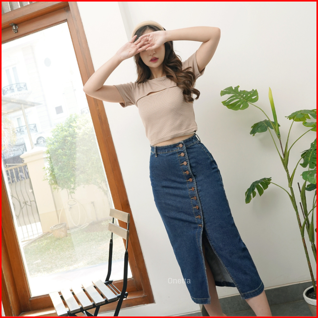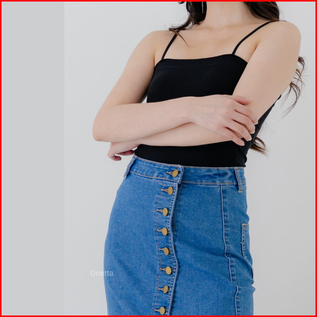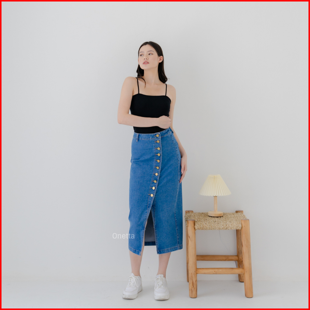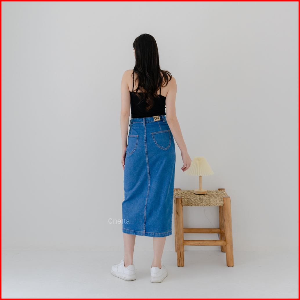 Onetta - Rok Span Jeans Belah Depan Panjang 7 8 Press Body Skirt Lydia Aqua