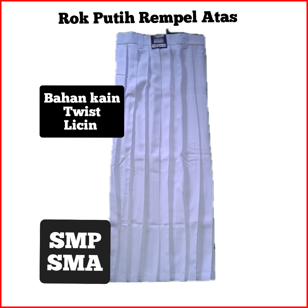 Seragam Sekolah Rok Putih Panjang Rempel Lipit Smp Sma Twist Licin Non Karet
