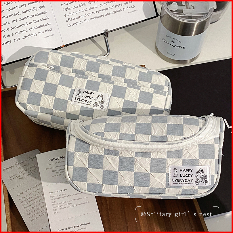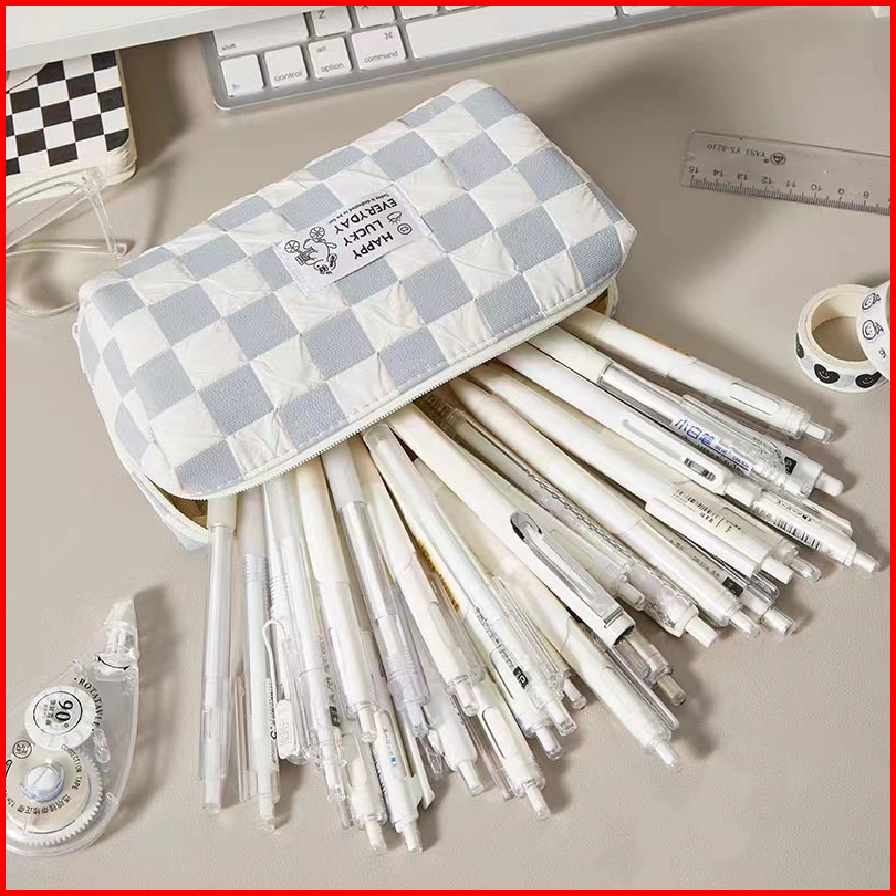 Tempat Pensil Kotak-kotak Krim Kapasitas Besar
