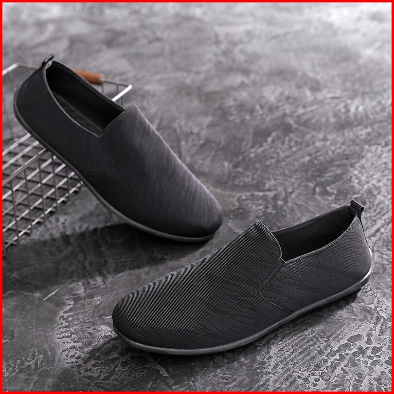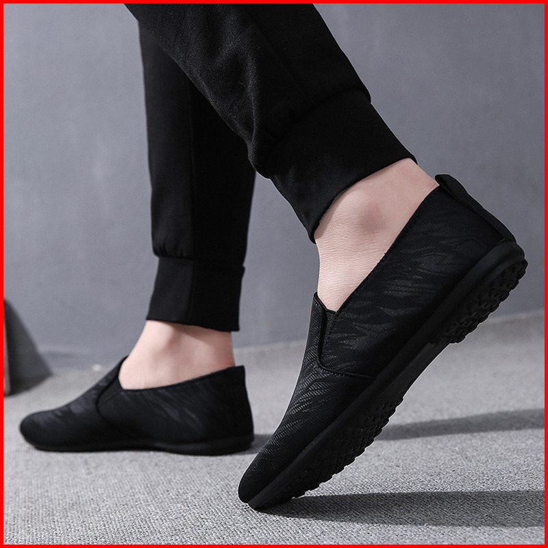 Highland Sepatu Slip On Hitam Pria Sepatu Slop Kerja Full Black Casual Formal Pantofel Kantor Mr214