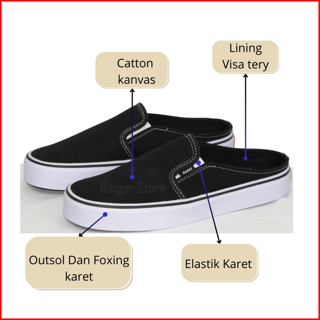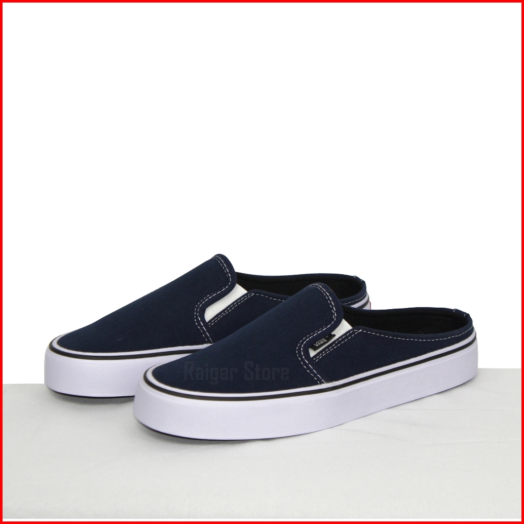 Sepatu Sandal Bustong Vans Slip On Tanpa Tali Slop Pria Wanita Casual Kanvas Tebal Simpel Termurah