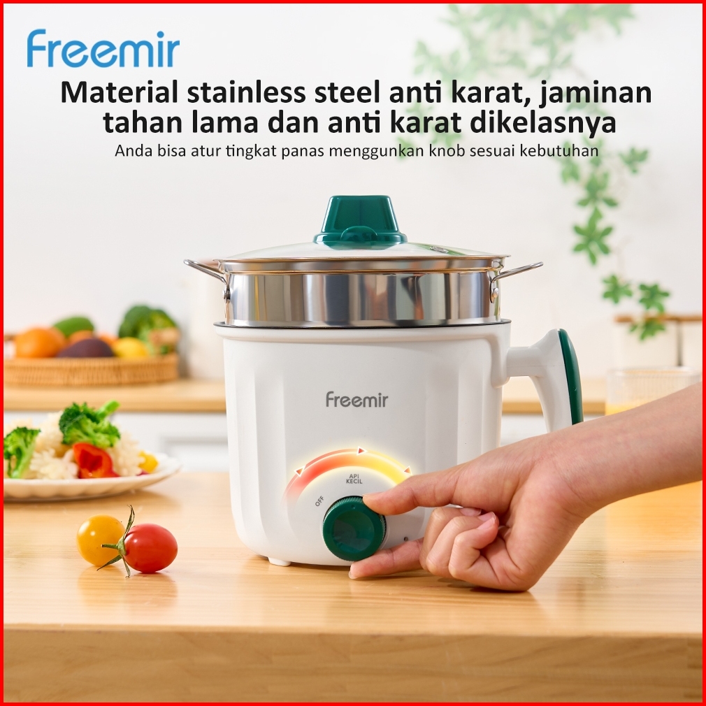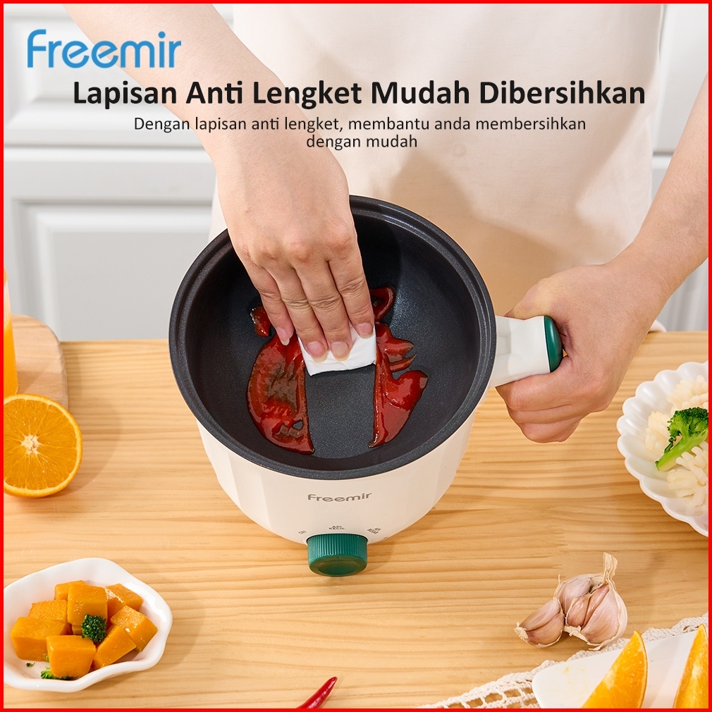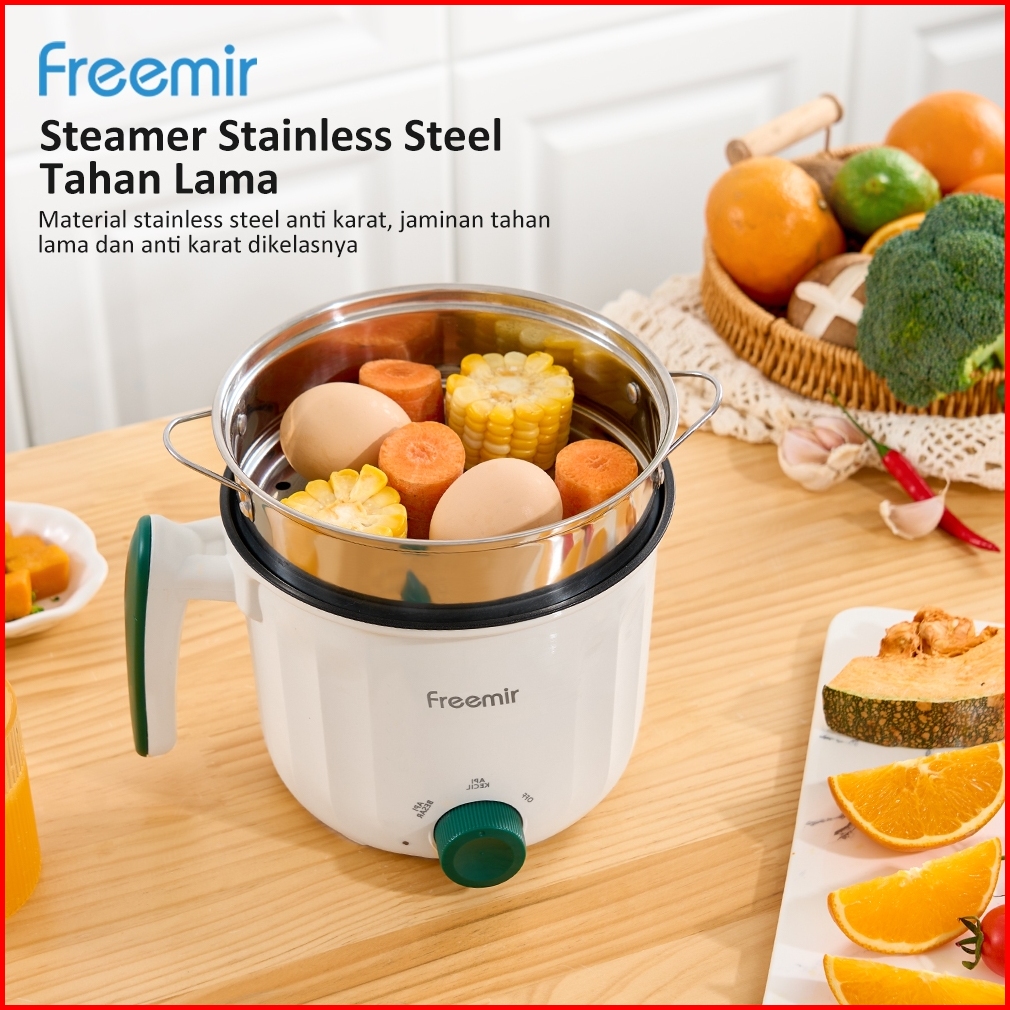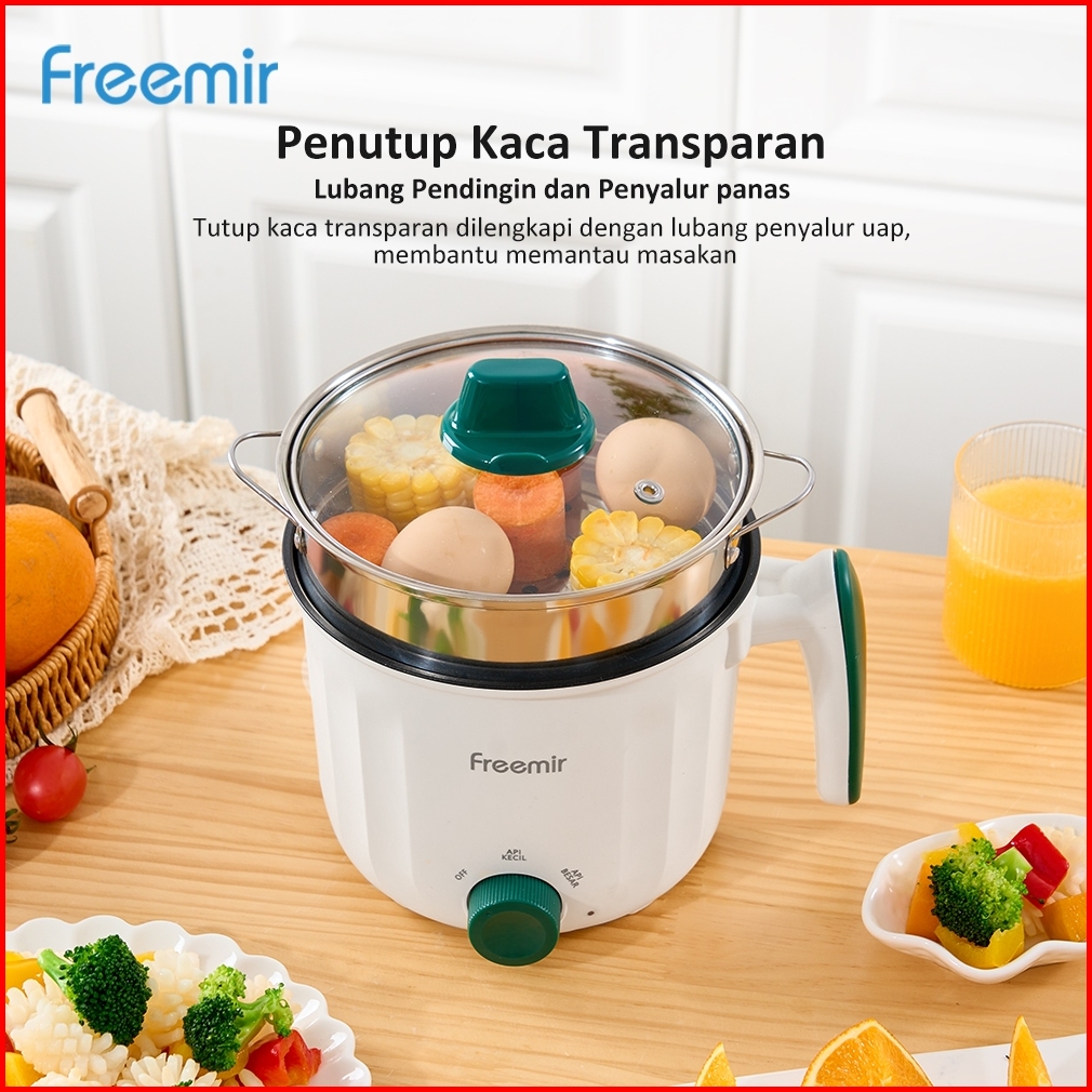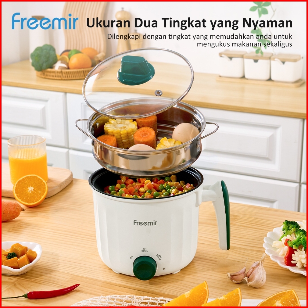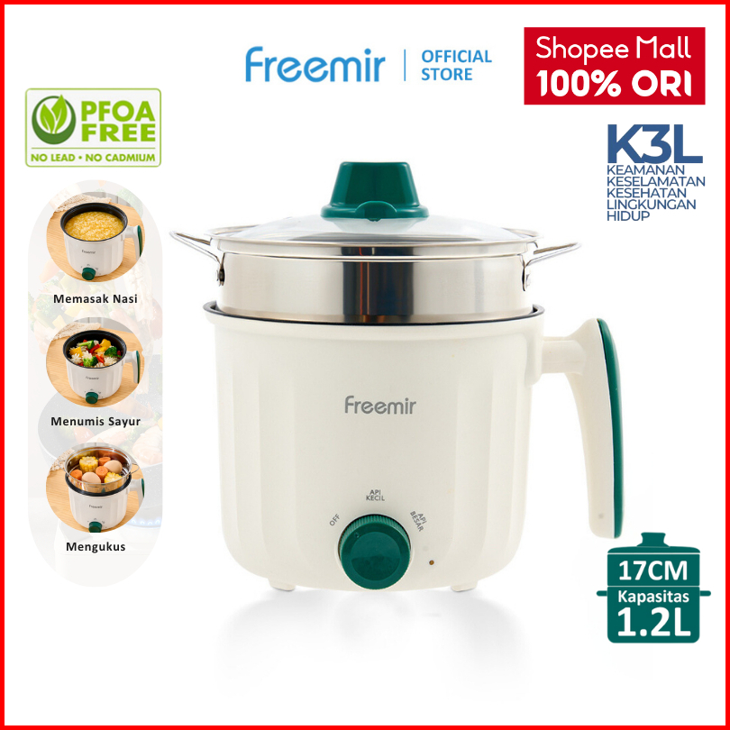Mall Freemir 1.2l Panci Elektrik Fry Pan Electric 2in1 Pengukus Panci Penggorengan Keramik Elektrik Free Steamer Memasak