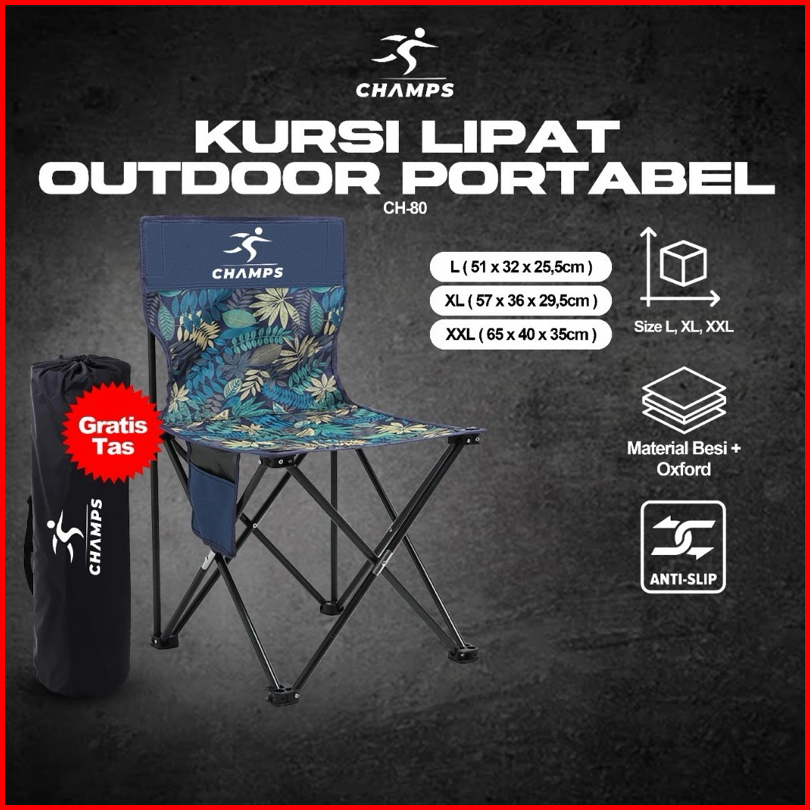 Champs Kursi Lipat Portable Camping Kursi Gunung Mudah Dilipat Foldable Chair L Xl Xxl - Motif Flower Kursi Lipat Bt Man
