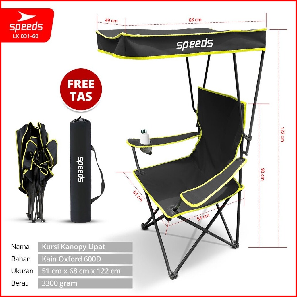 Speeds Kursi Lipat Dengan Atap Kanopi Portabel Folding Chair Portable Canopy Camping 031-60