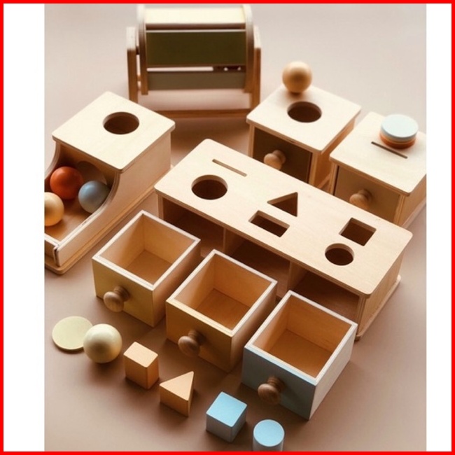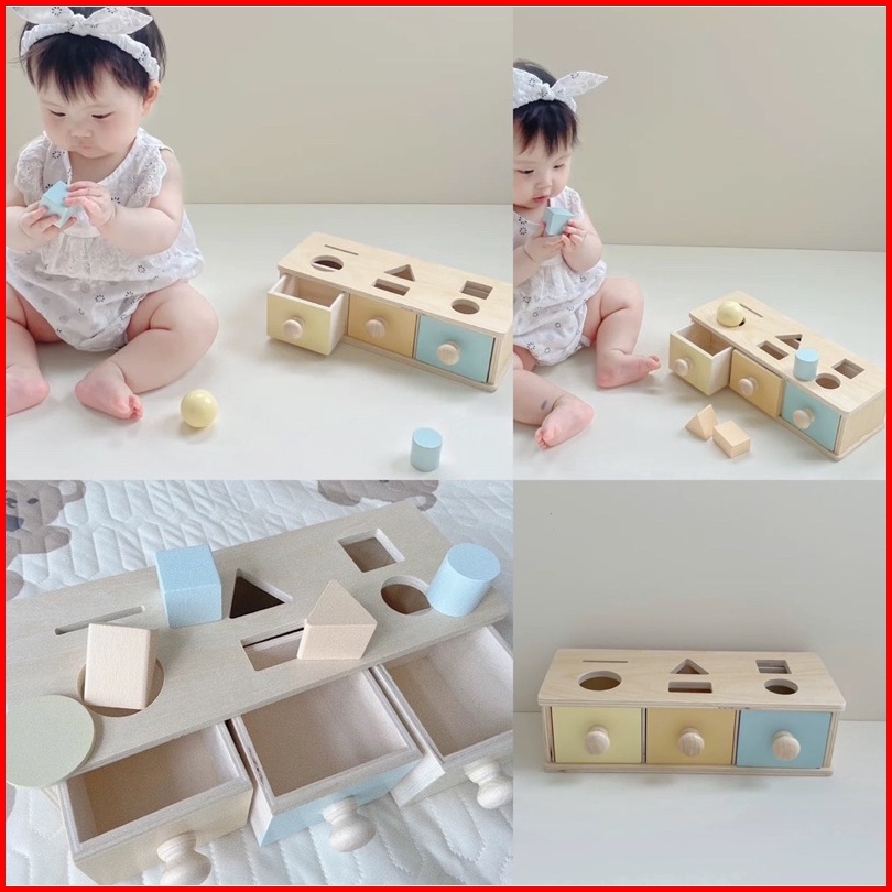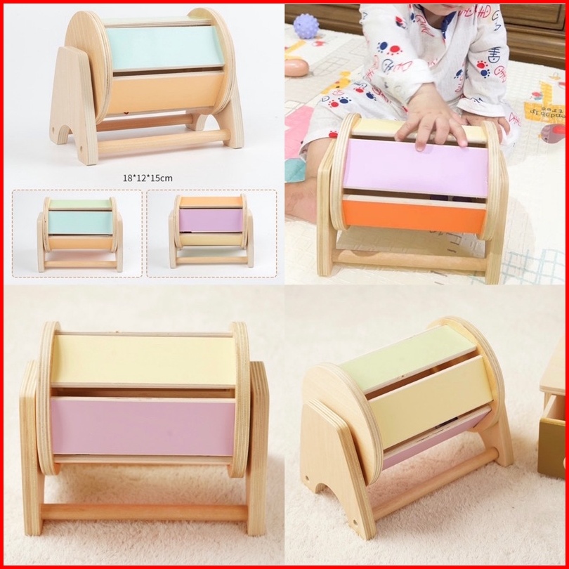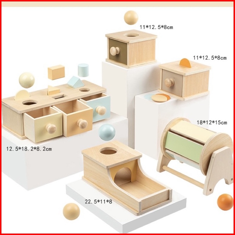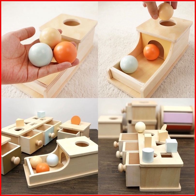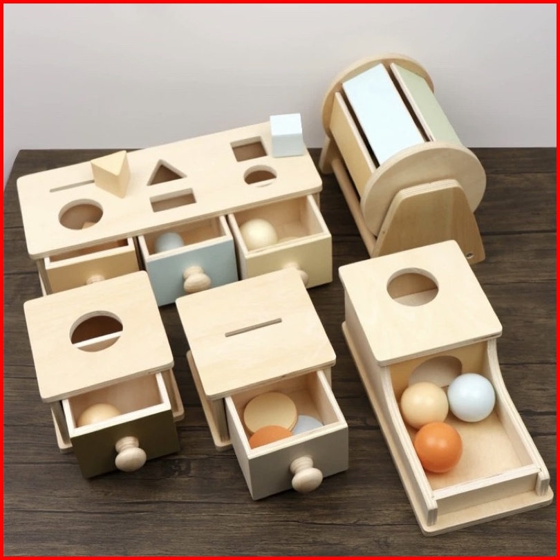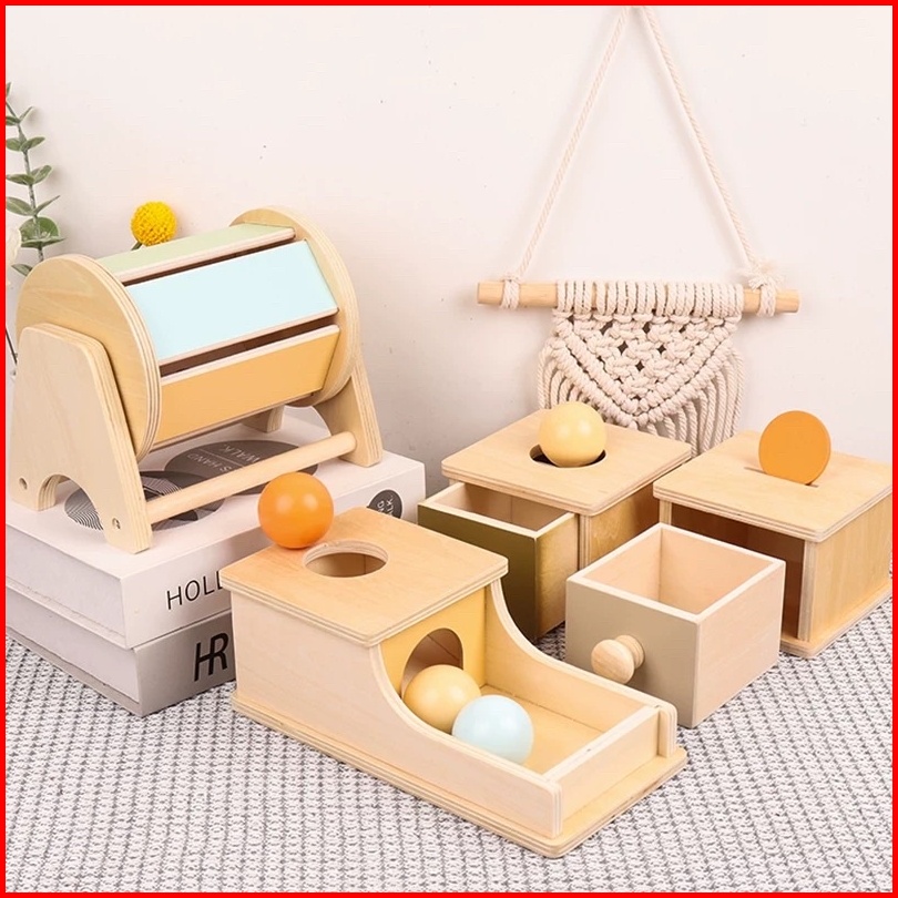 Baby Montessori Toys Macaroon Color Coin Box Ball Box Spinning Drum Object Permanence Box Motoric Toys Mainan Edukasi An