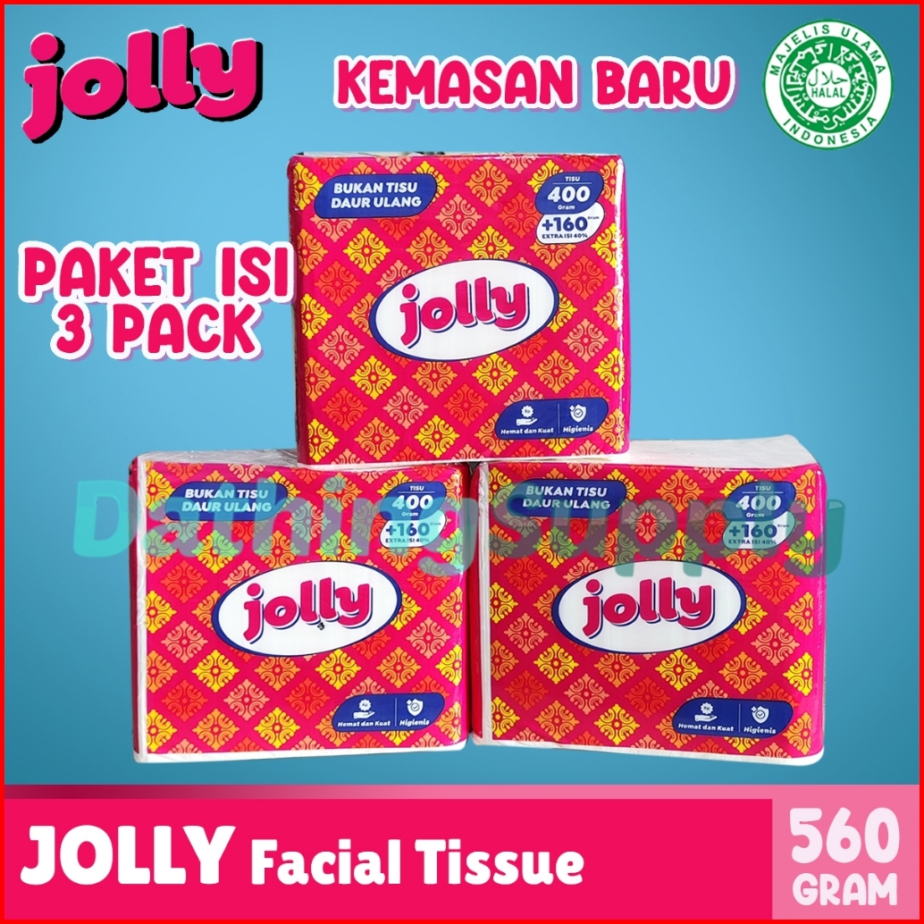 Tissue Jolly Facial Isi 560 Gram - 2 Ply Tisu Wajah Halus Lembut 560gram 2 Lapis - 3 Pcs