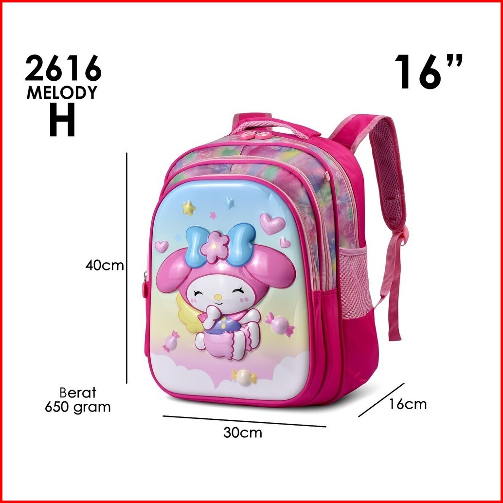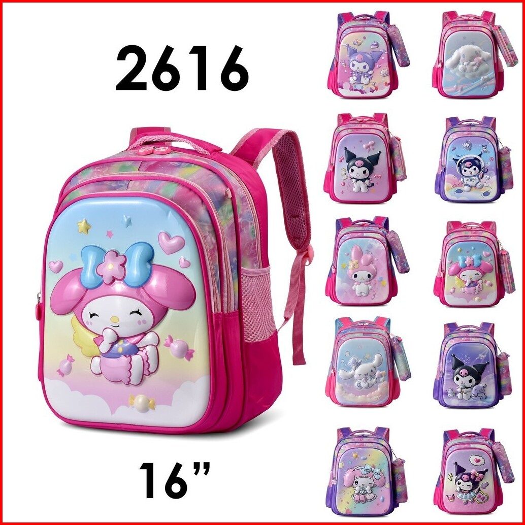 Meila Tas Anak Cartoom Kuromi 2616-16 Tas Ransel Melody Tas Anak Sekolah Motif Cinnamon