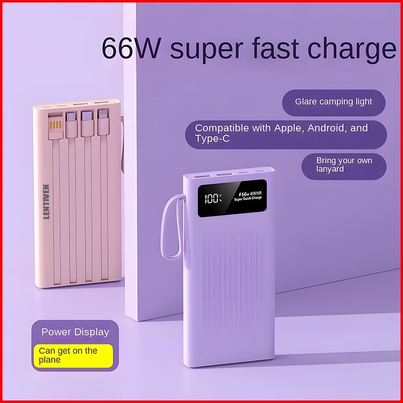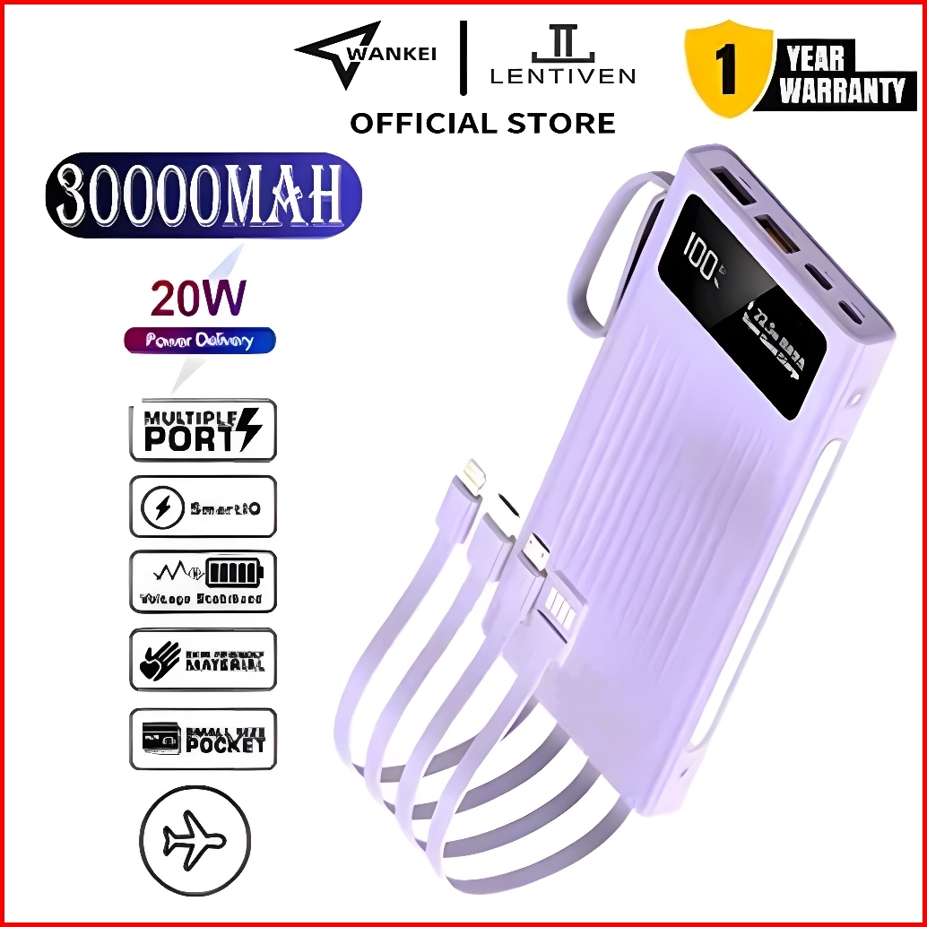 Wankei Lentiven Powerbank 30000 Mah Mini With 4 Kabel Data Fast Charging Pj57